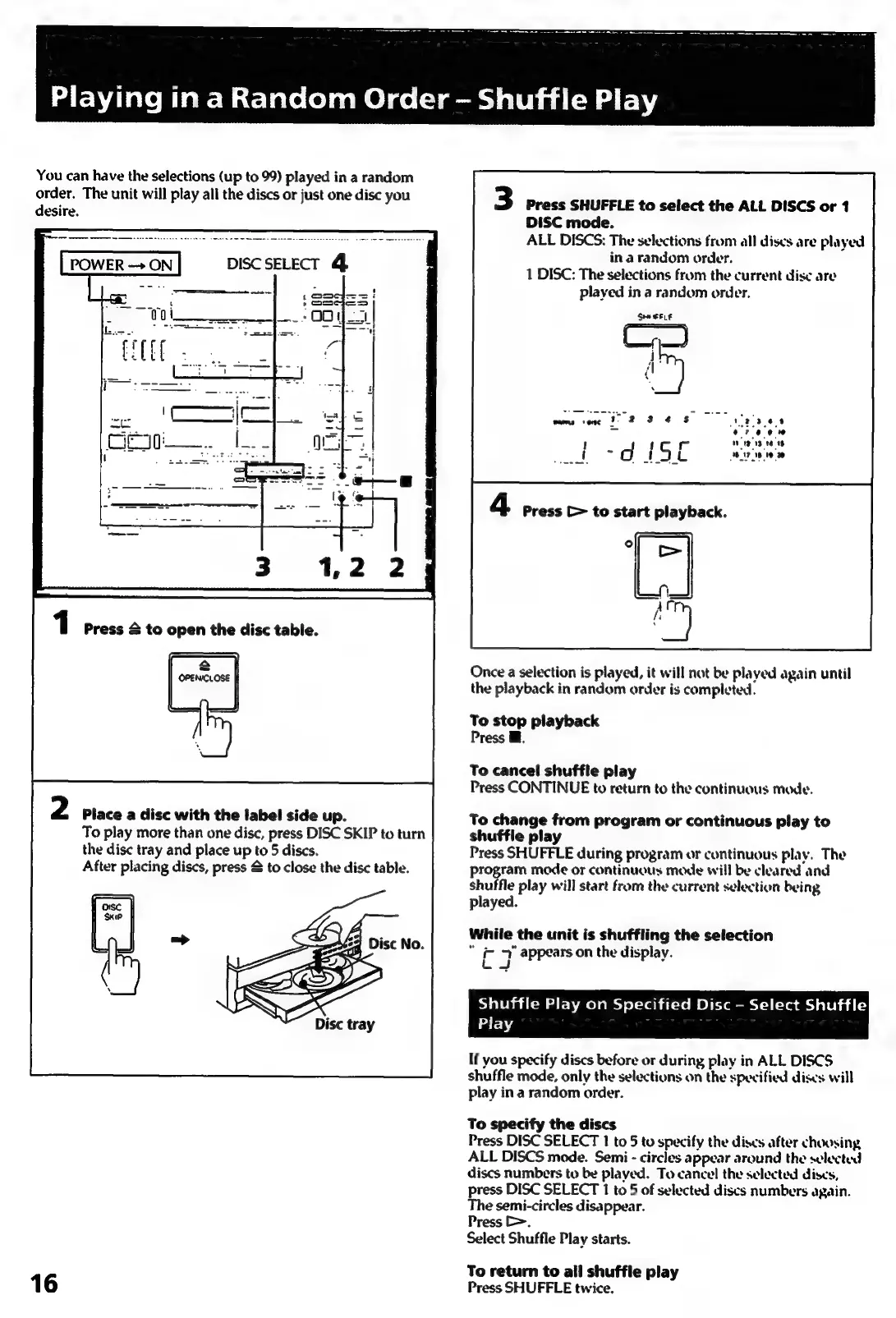 Sony HCD-241 - Playing in a Random Order - Shuffle Play; Shuffle Play on Specified Disc - Select Shuffle Play