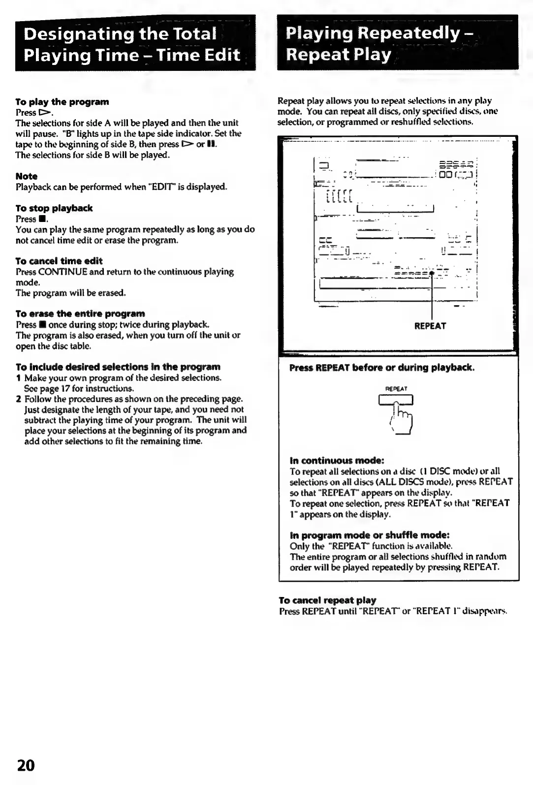 Sony HCD-241 - Designating the Total Playing Time - Time Edit; Playing Repeatedly - Repeat Play