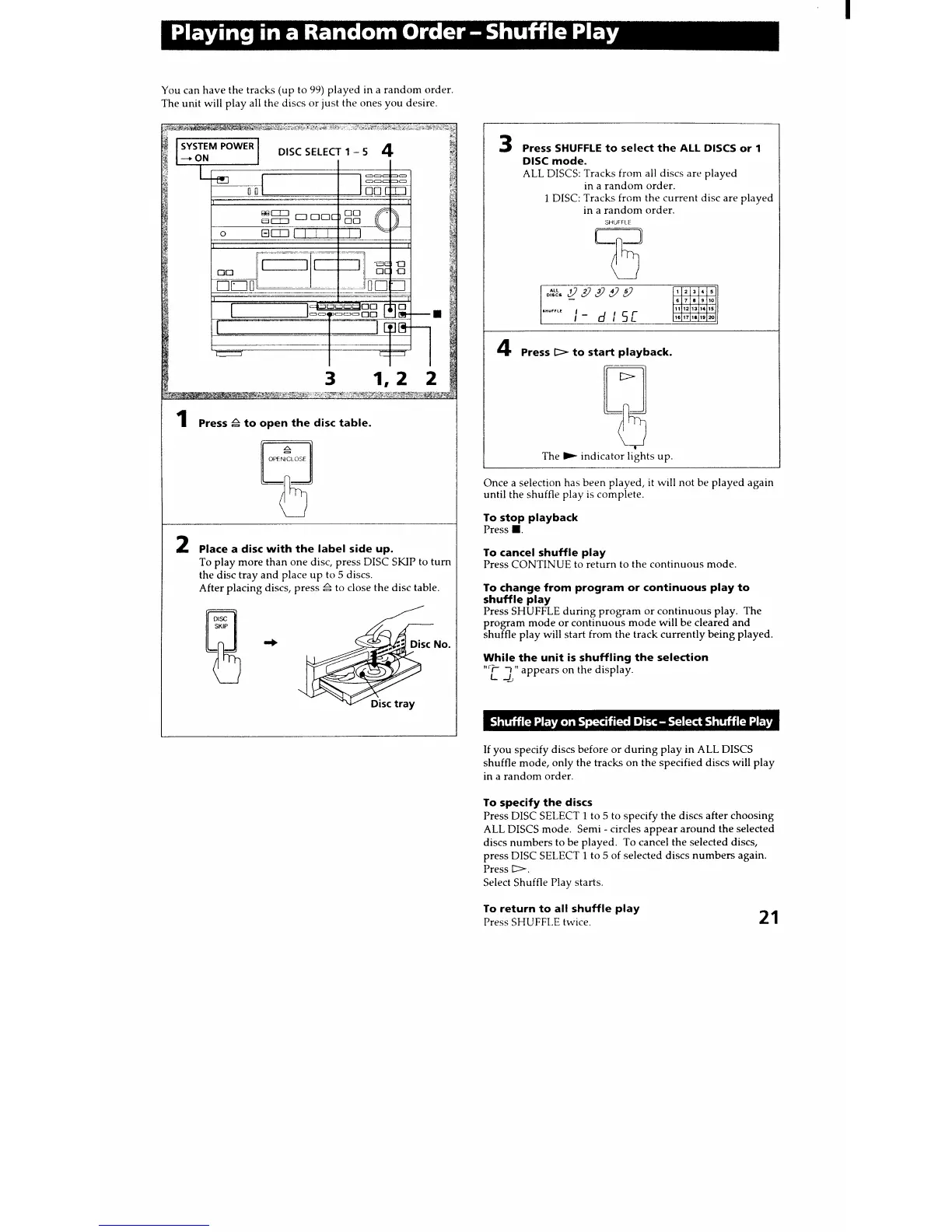 Sony HCD-451 - Playing in a Random Order - Shuffle Play; Shuffle Play on Specified Disc - Select Shuffle Play