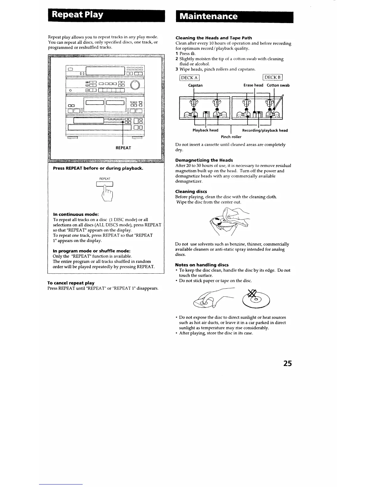 Sony HCD-451 - System Maintenance; Cleaning Heads and Tape Path; Cleaning CD Discs