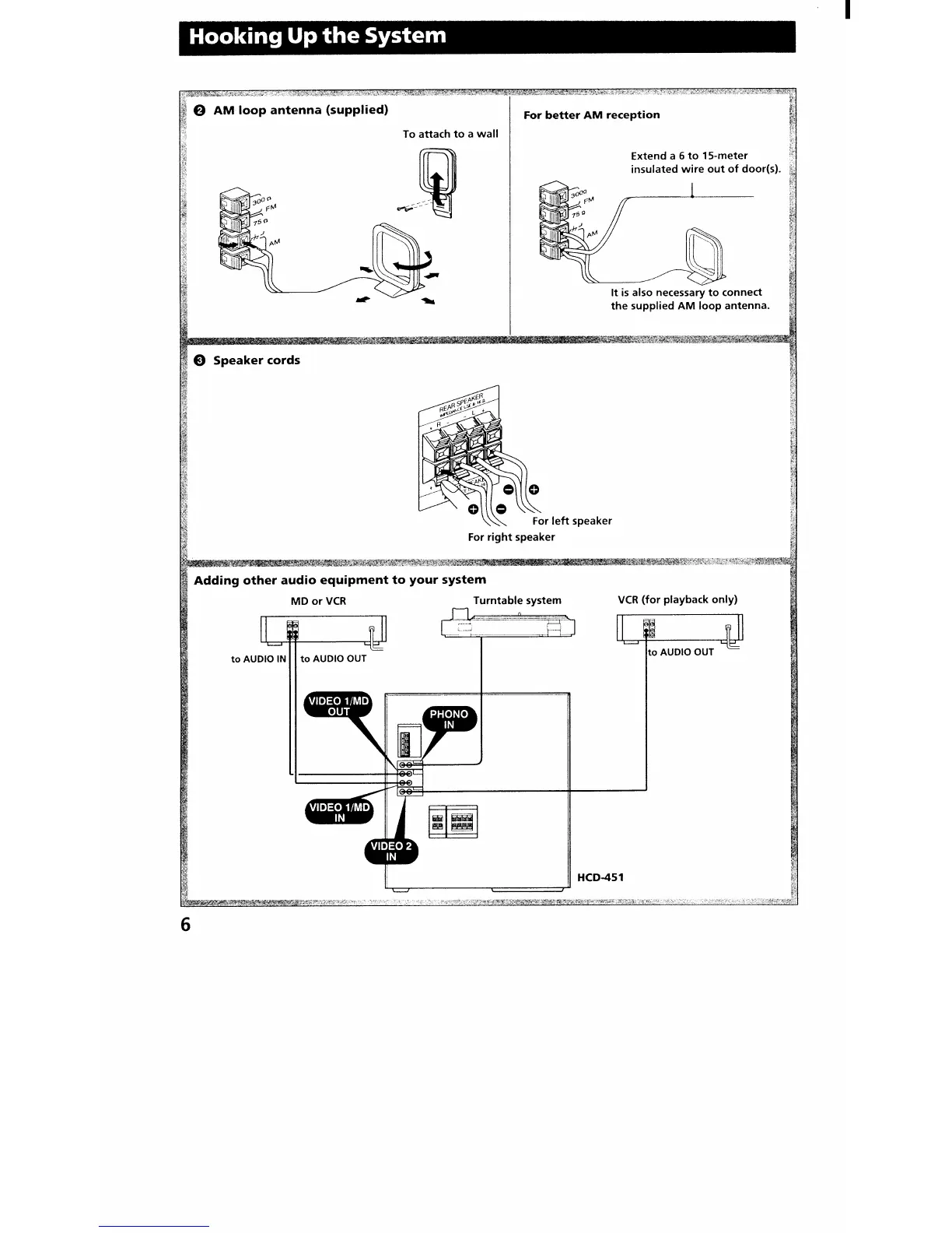 Sony HCD-451 - Speaker Cord Connection; Adding Other Audio Equipment