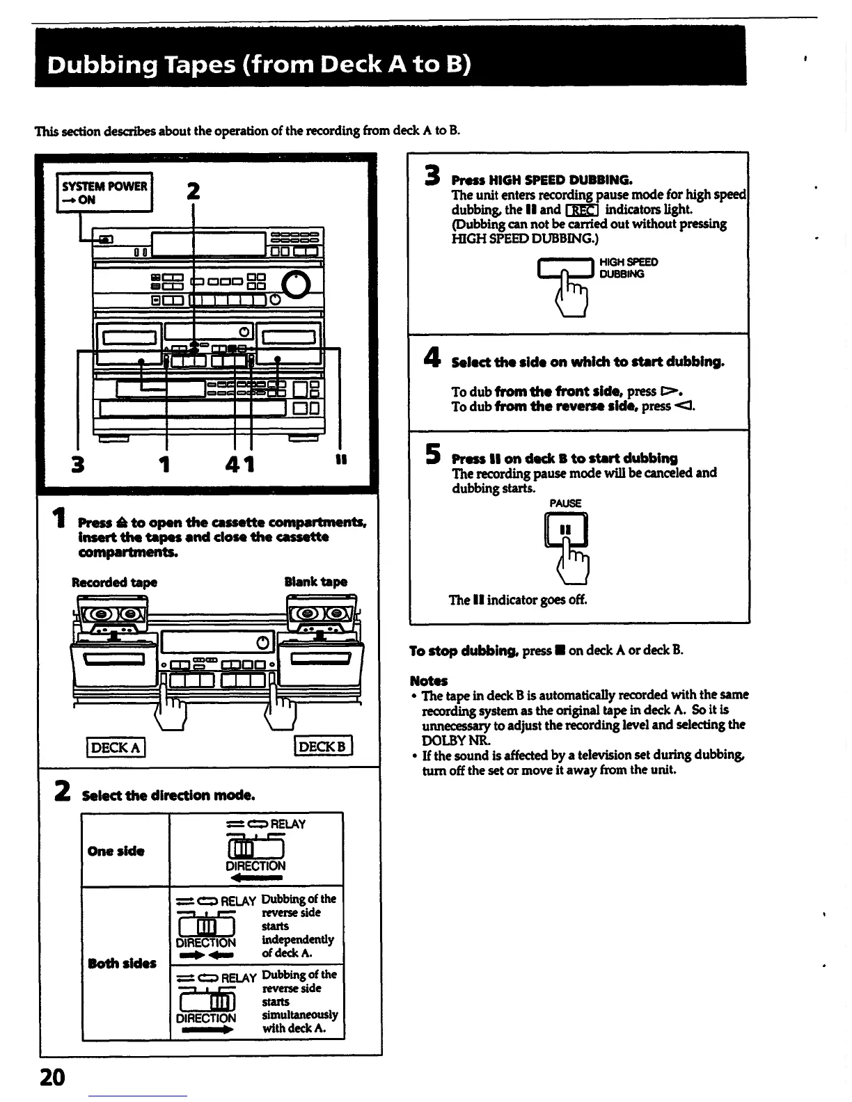 Sony HCD-541 Primary - Tape Dubbing; High-Speed Tape Copying