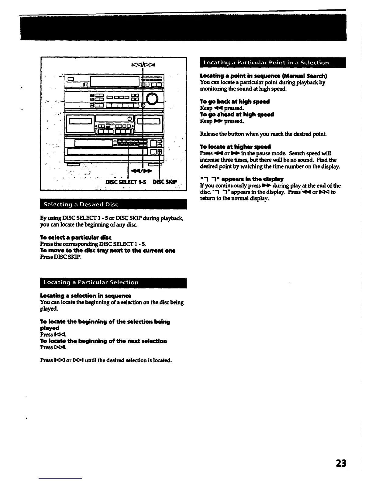 Sony HCD-541 Primary - Disc and Track Navigation; Selecting Discs and Locating Tracks