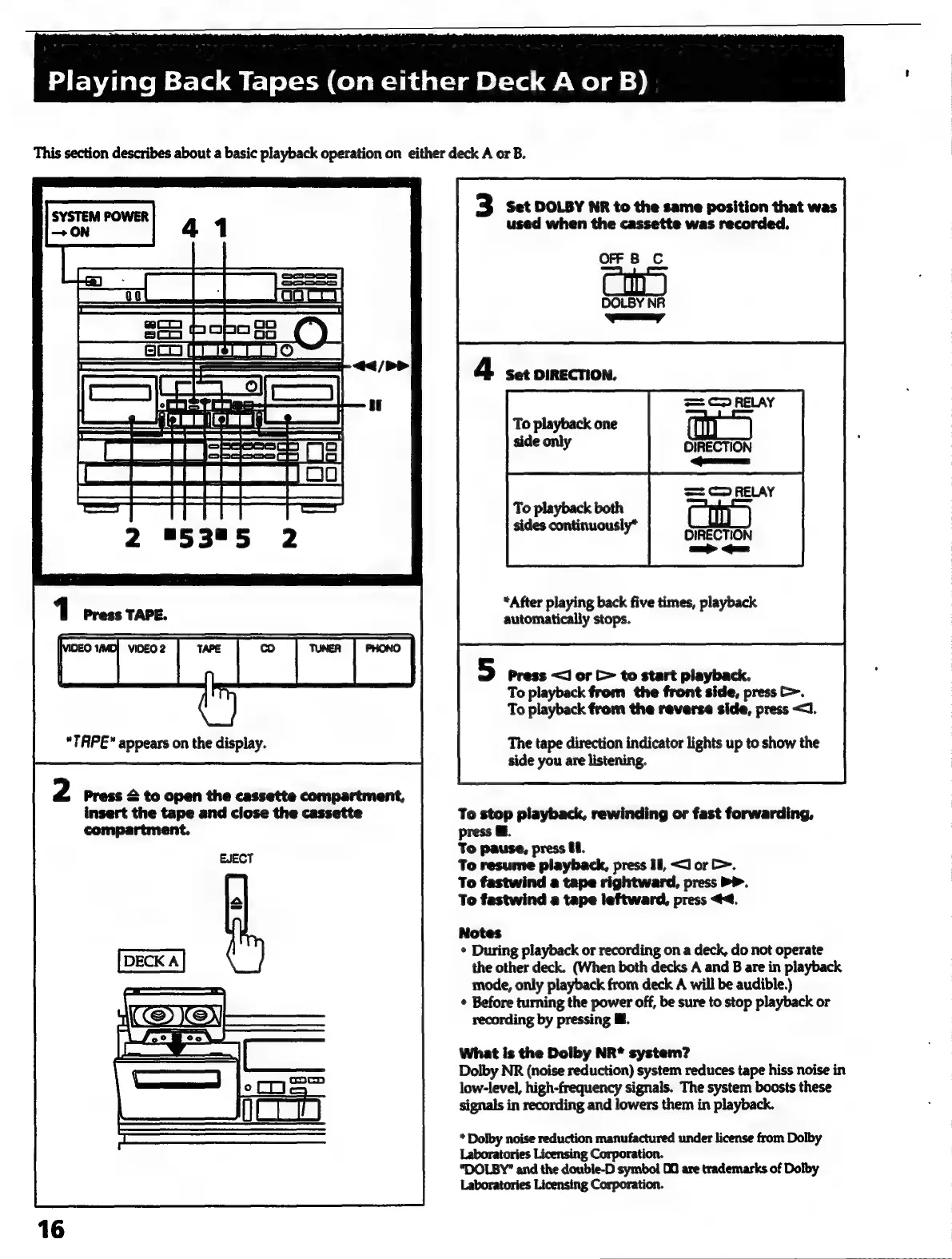 Sony HCD-541 - Playing Back Tapes (on Either Deck a or B)