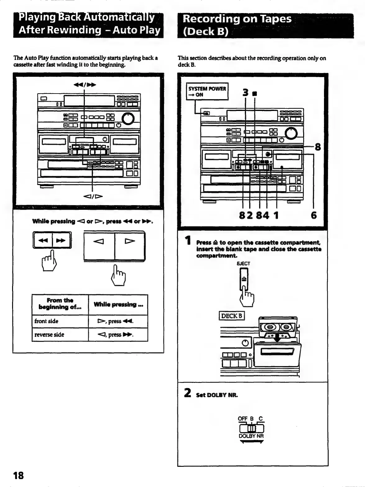 Sony HCD-541 - Auto Play; Recording on Tapes (Deck B)