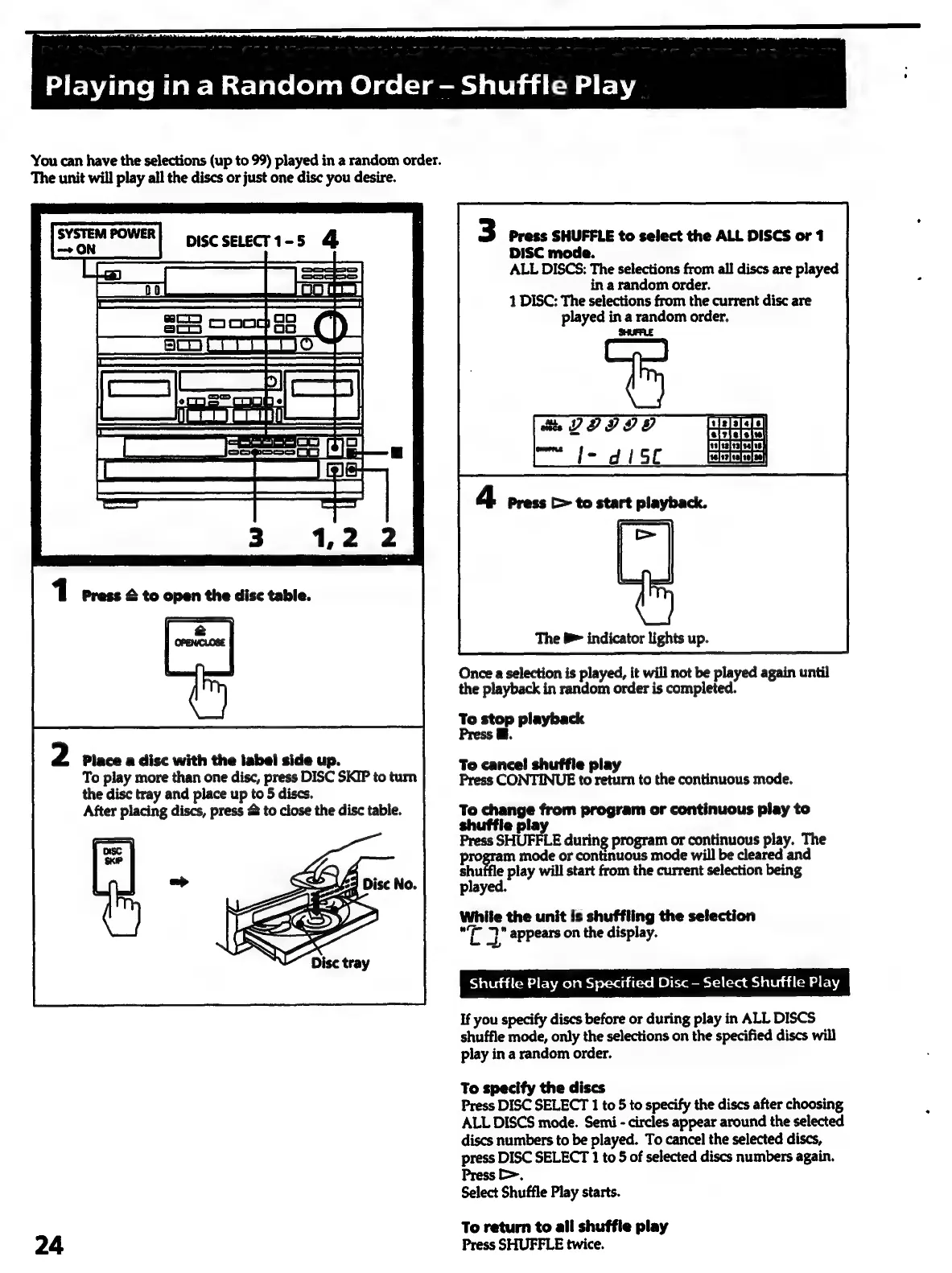 Sony HCD-541 - Shuffle Play on Specified Disc - Select Shuffle Play
