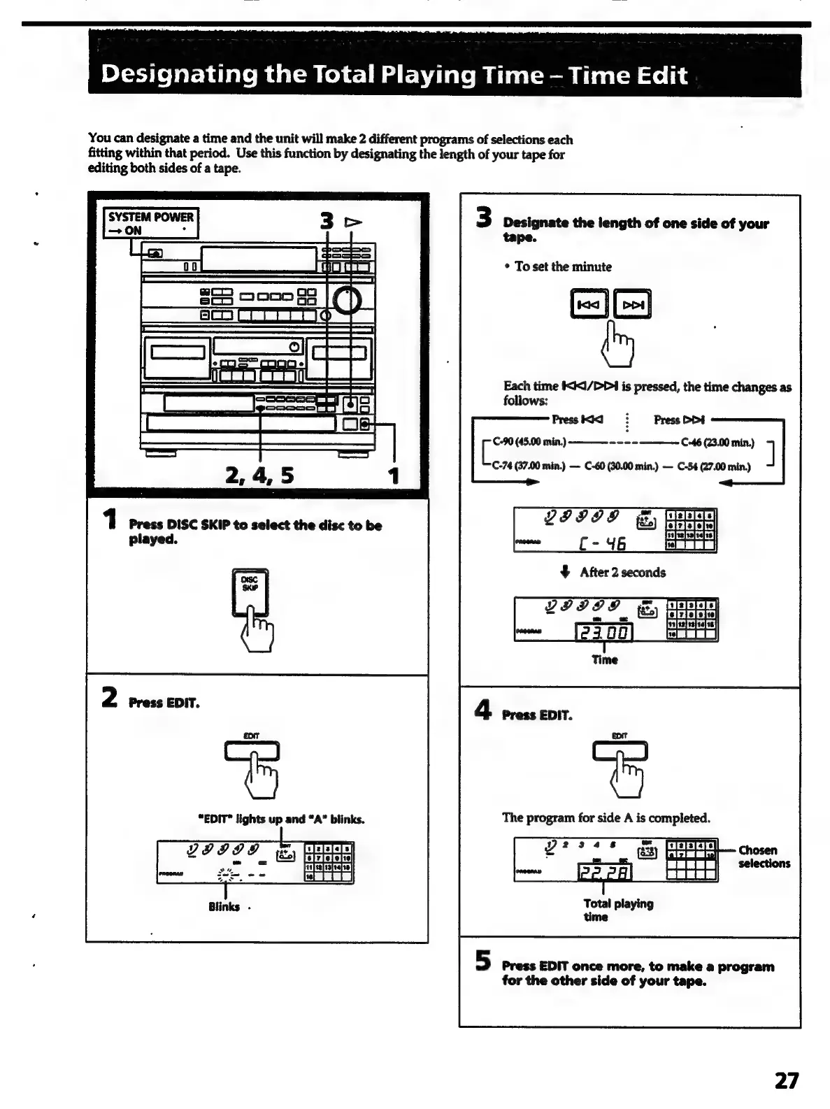 Sony HCD-541 - Designating the Total Playing Time - Time Edit