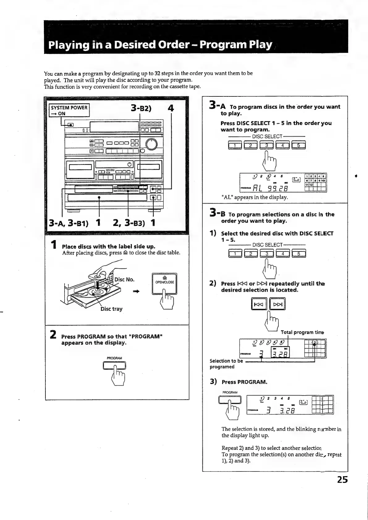 Sony HCD-551 - Program Play - Desired Order; Programming Discs and Selections