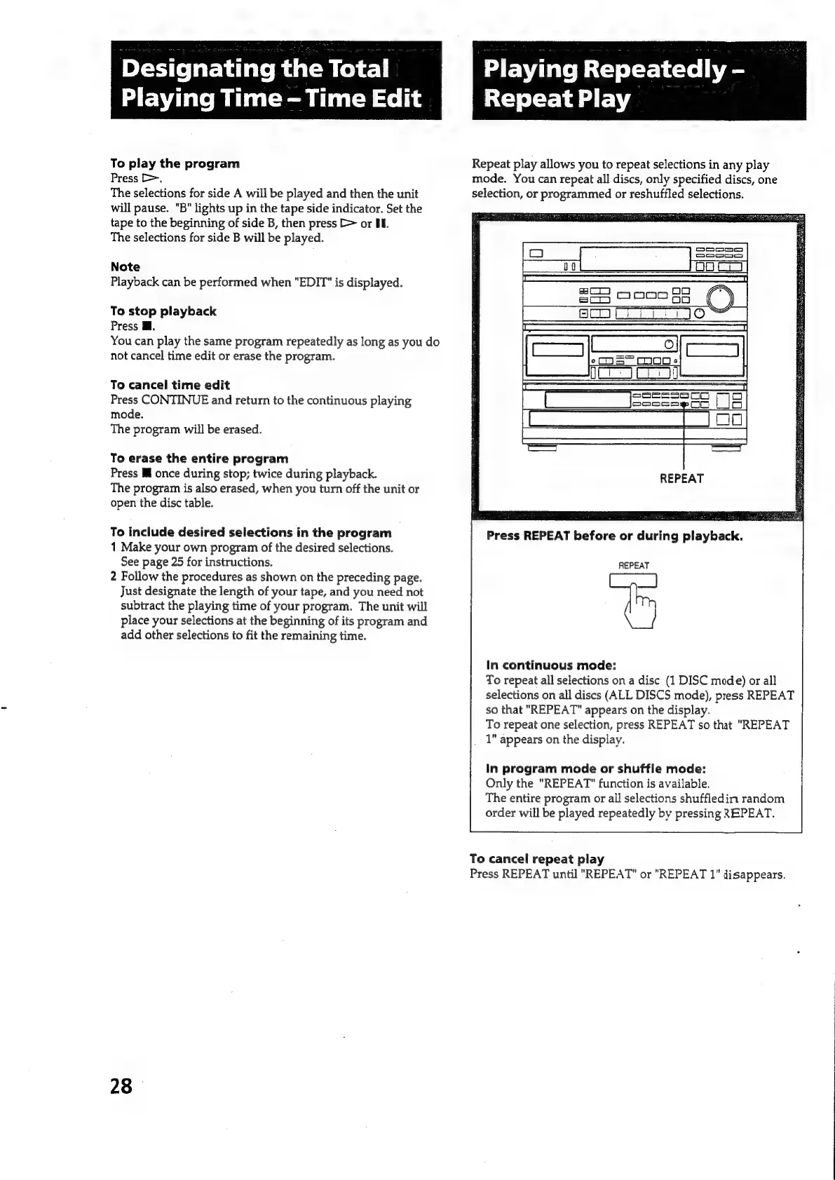 Sony HCD-551 - Program Playback and Cancellation; Repeat Play - Playing Repeatedly; Repeat Playback Modes; Cancelling Repeat Play