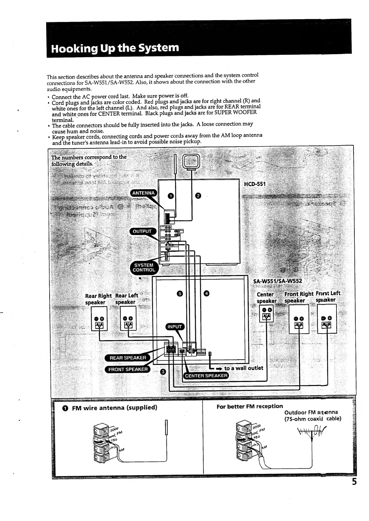 Sony HCD-551 - Hooking Up the System; System Connection Overview; Antenna and Speaker Connections
