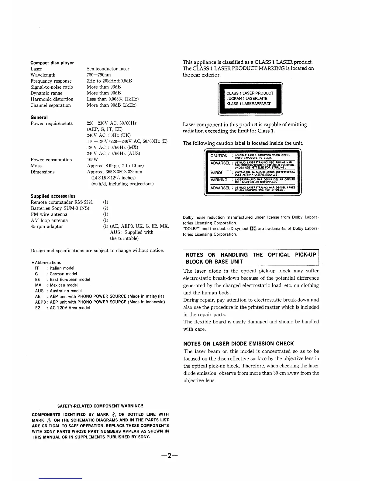 Sony HCD-A290 - Notes on Handling the Optical Pick-Up Block or Base Unit; Notes on Laser Diode Emission Check