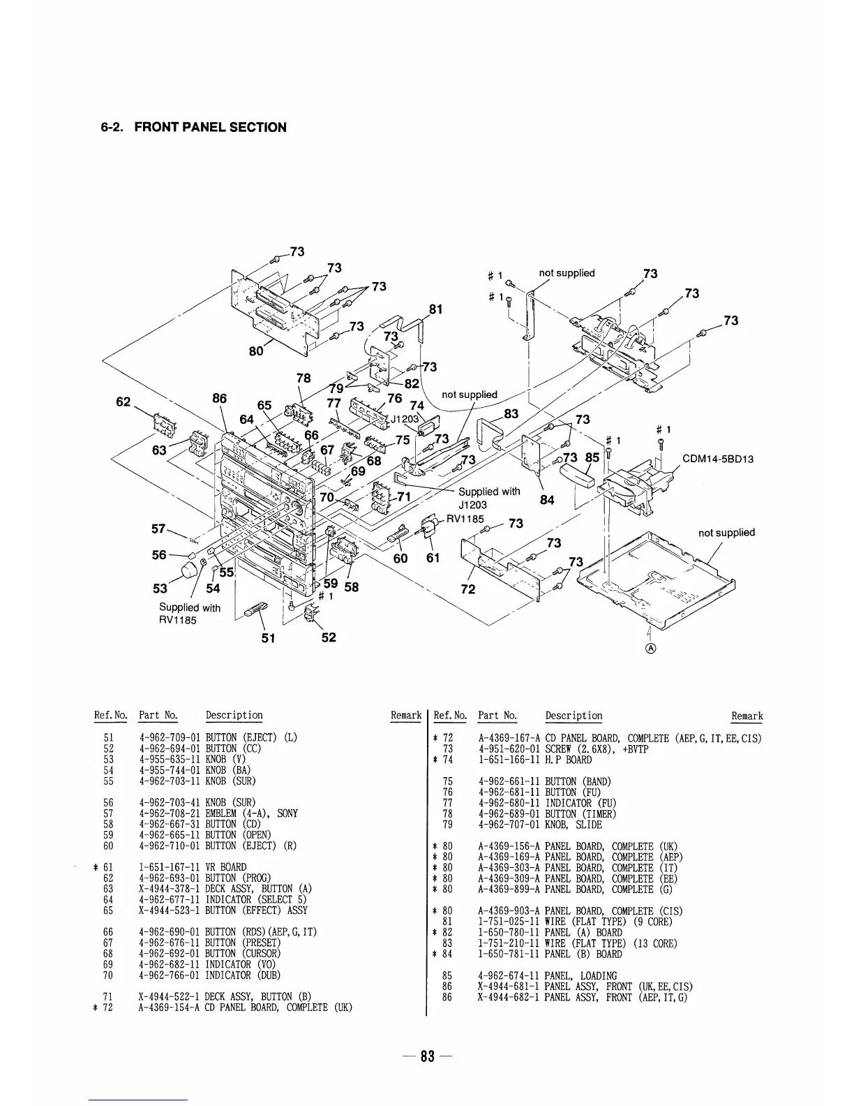 Sony HCD-A490 - EXPLODED VIEWS (Front Panel); Front Panel Section Exploded View