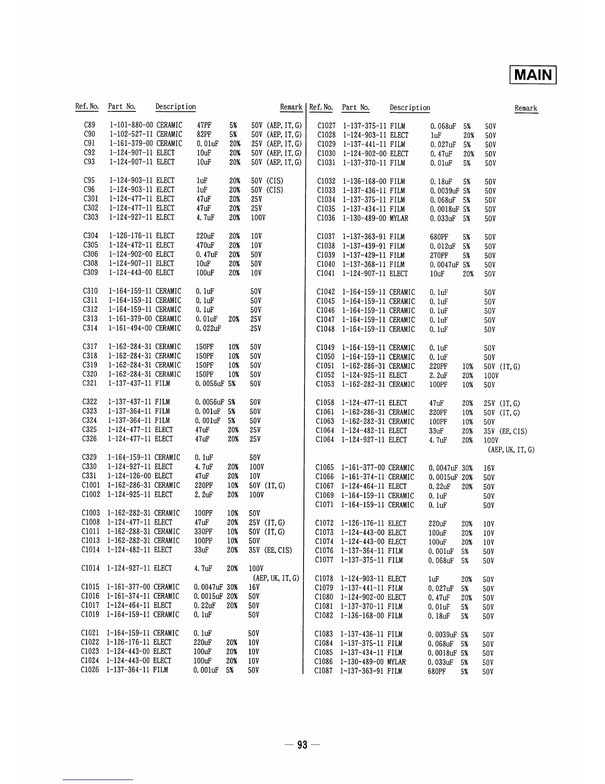 Sony HCD-A490 - ELECTRICAL PARTS LIST (Main Board - Cont.); Main Board Parts List: Capacitors (Continued)