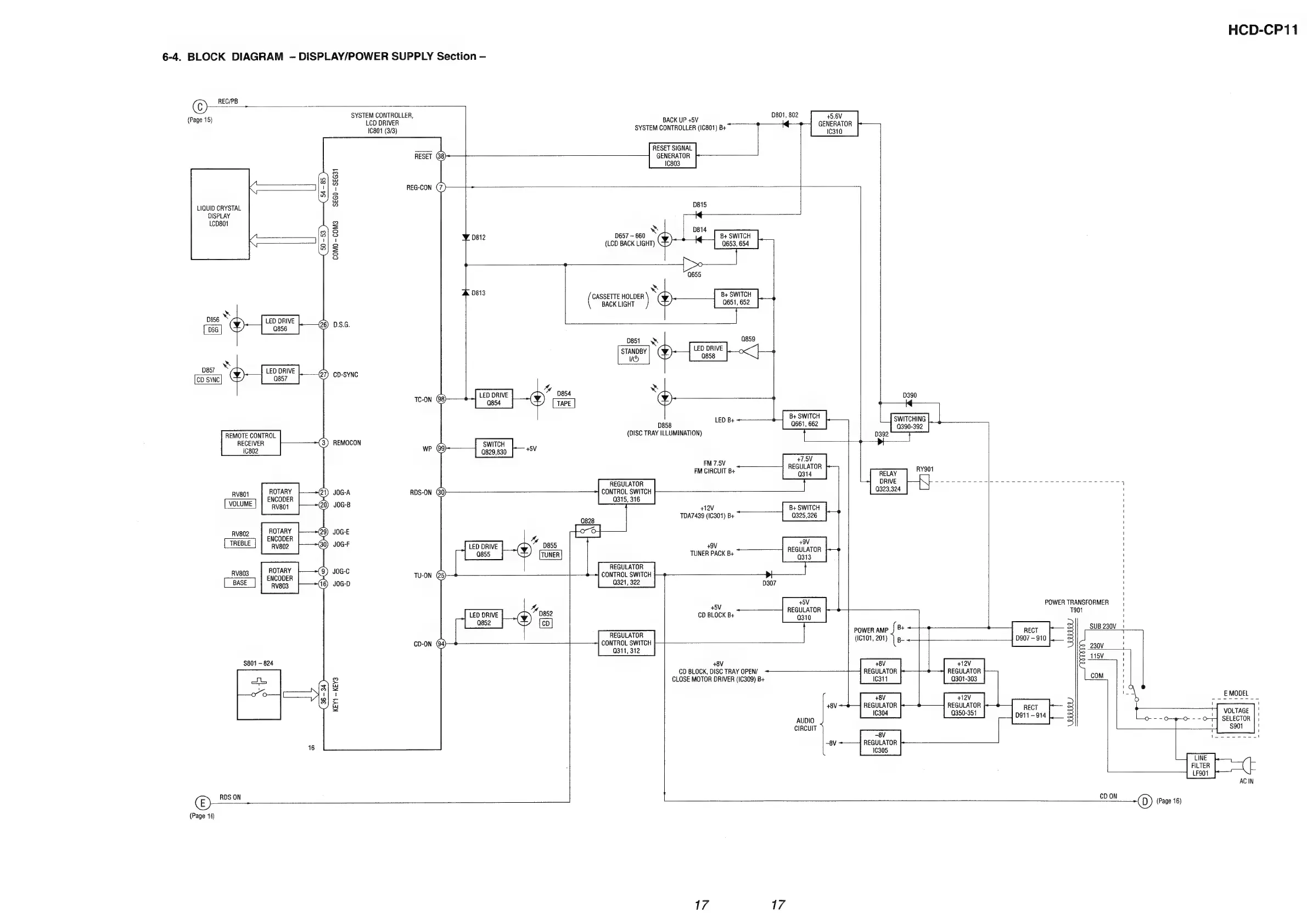 Sony HCD-CP11 - 6-4. BLOCK DIAGRAM - DISPLAY;POWER SUPPLY Section