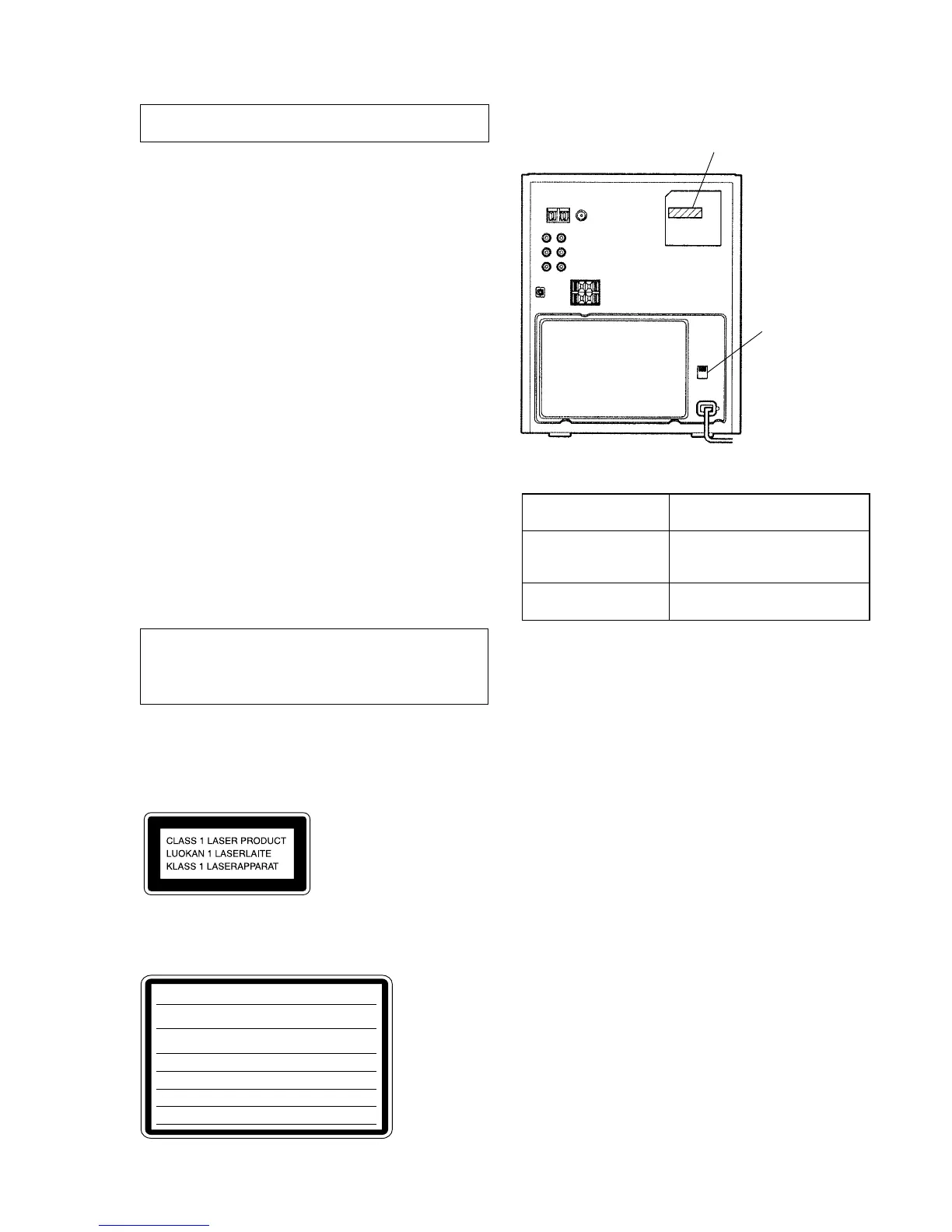 The CLASS 1 LASER PRODUCT MARKING is located on
