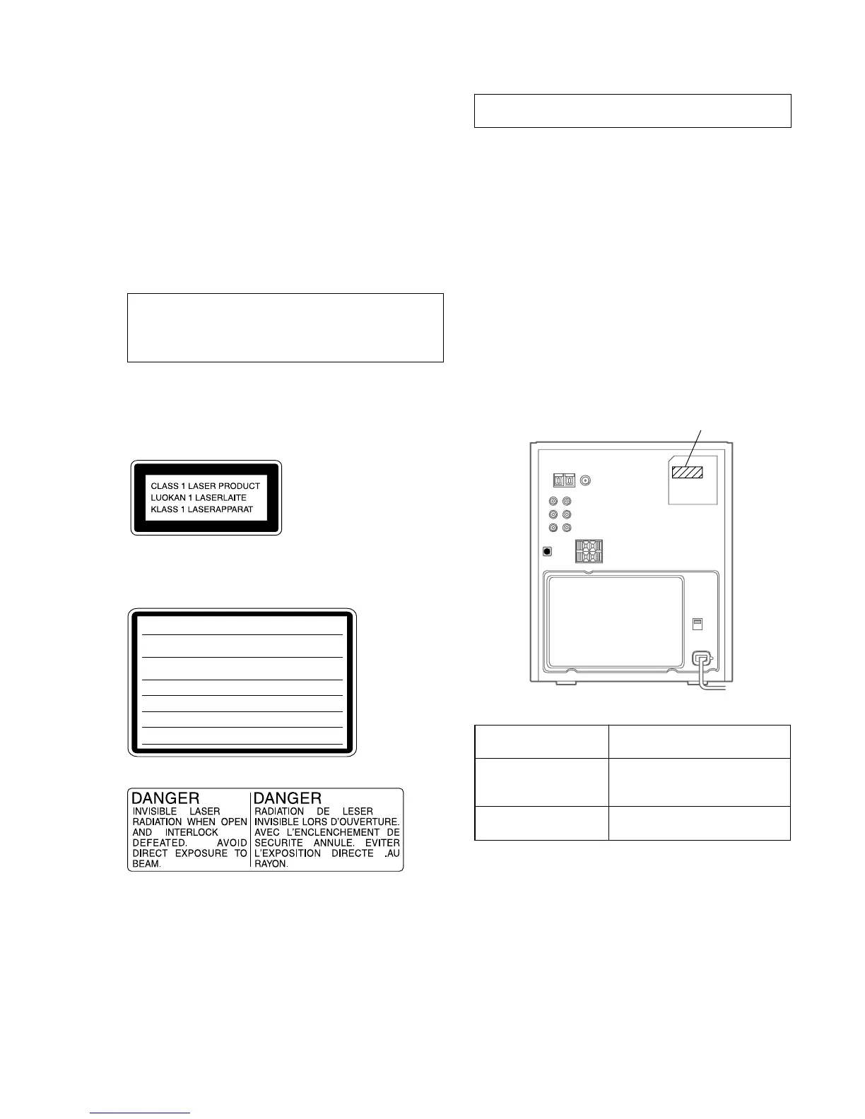 The CLASS 1 LASER PRODUCT MARKING is located on