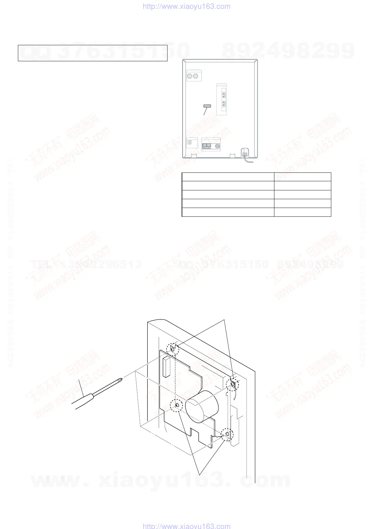 To prevent four screws of +BVTP 3 × 8 TYPE 2 TT (B), that fix the mechanical deck to the front panel, from being magnetized, must not