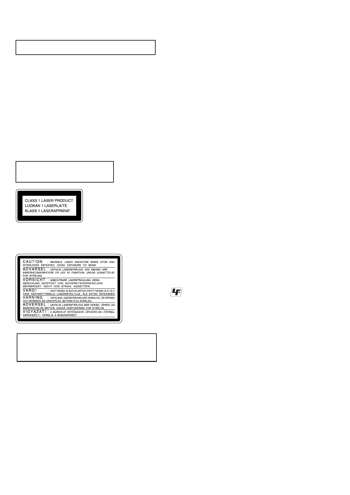 This appliance is classified as a CLASS 1 LASER product. The