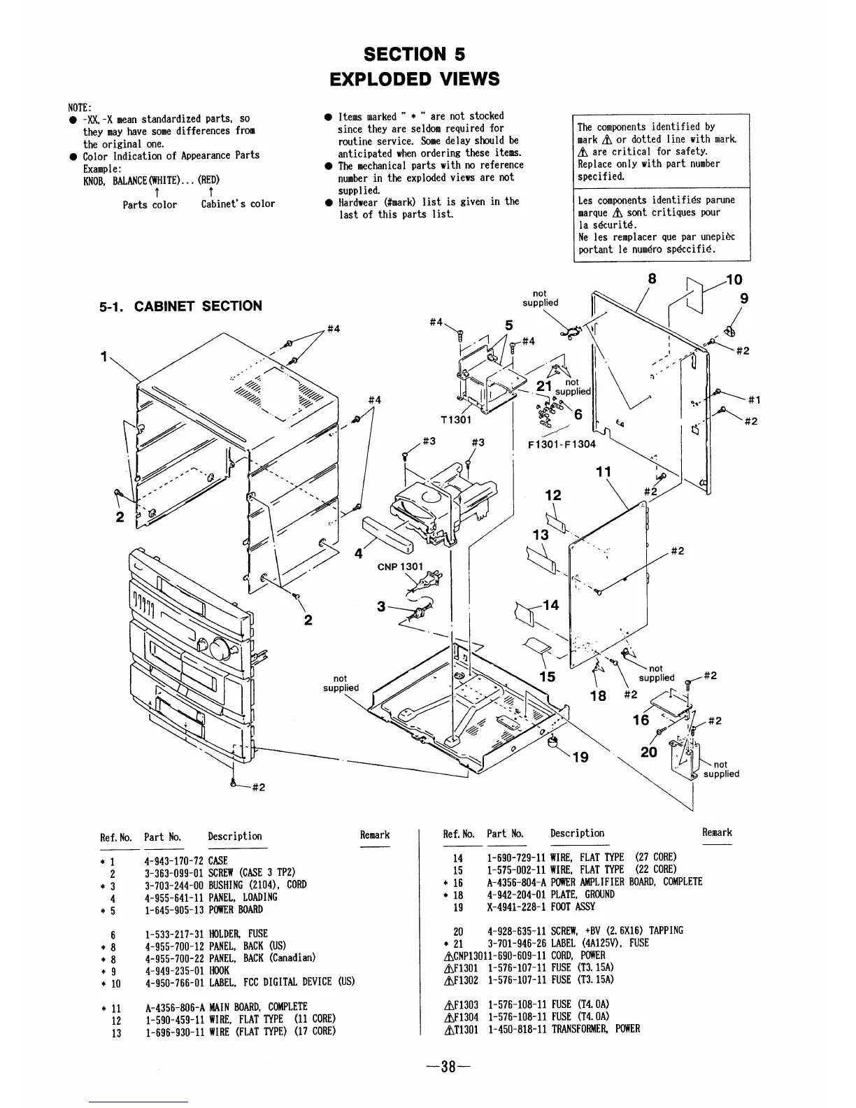 Sony HCD-D109 - Exploded Views - Cabinet Section; Cabinet Section Exploded View; Cabinet Section Parts List