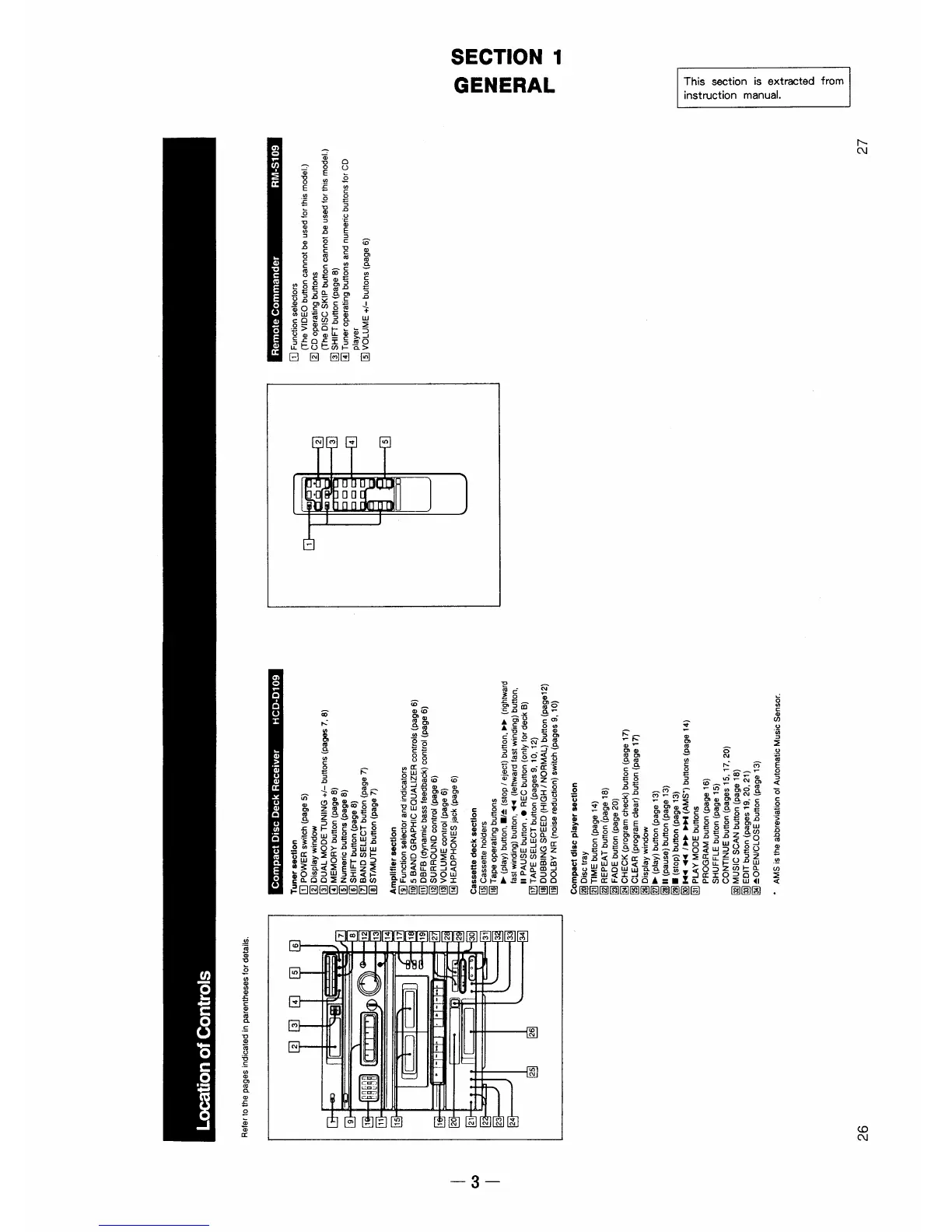 Sony HCD-D109 - Unit Controls and Identification; Main Unit Control Locations; Remote Commander Identification