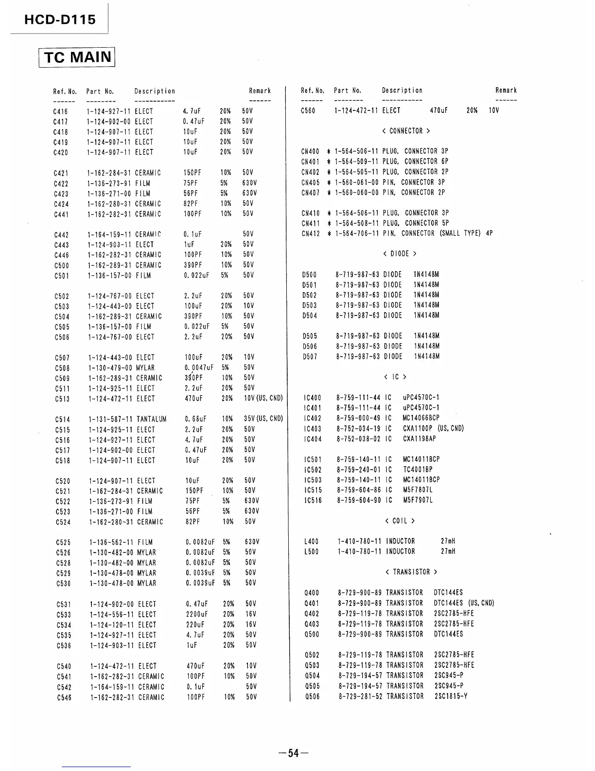 Sony HCD-D115 - TC MAIN Parts List (Continued); TC Main Board Components List