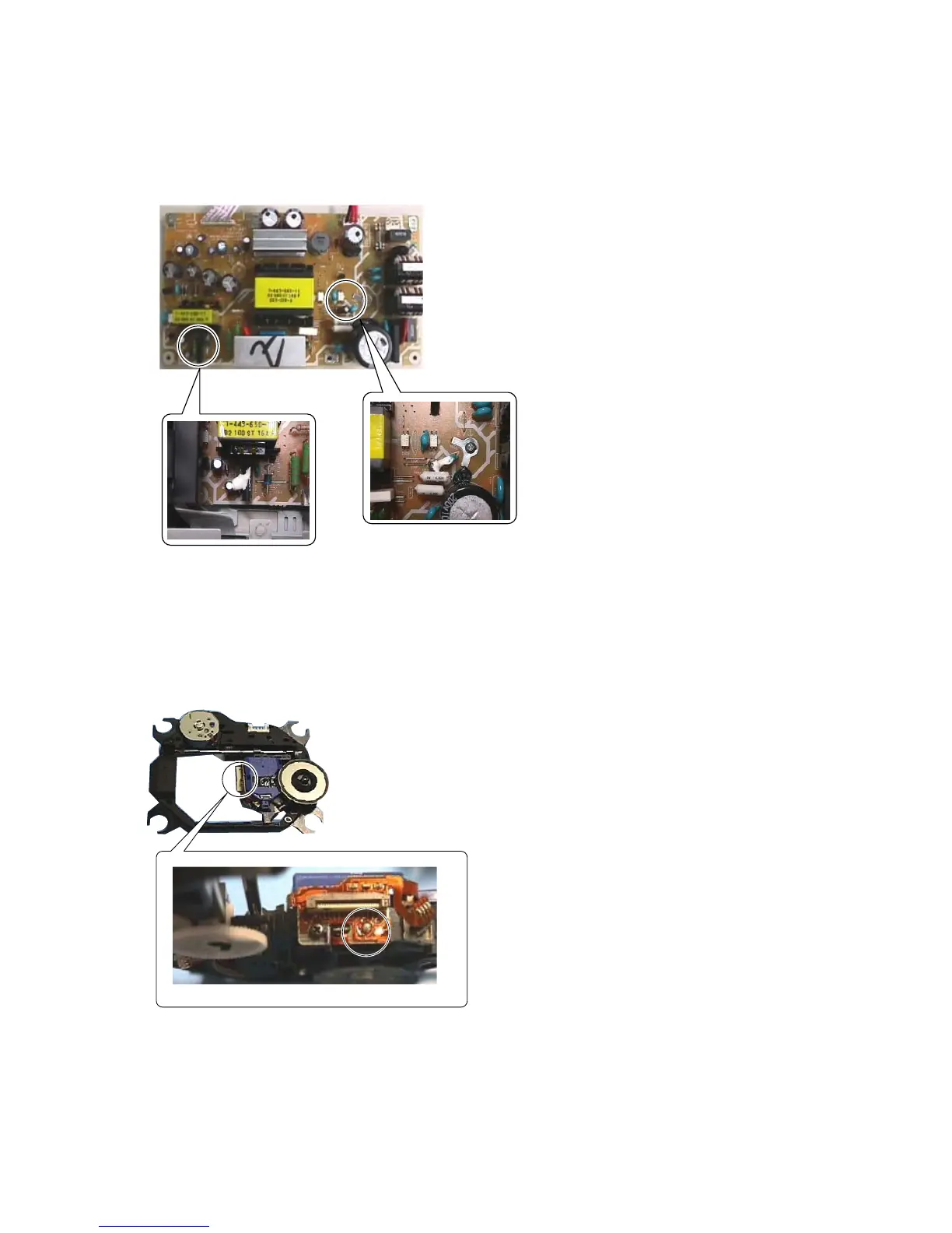 Be sure to fix the capacitors with adhesive agent when part or circuit board is replaced.