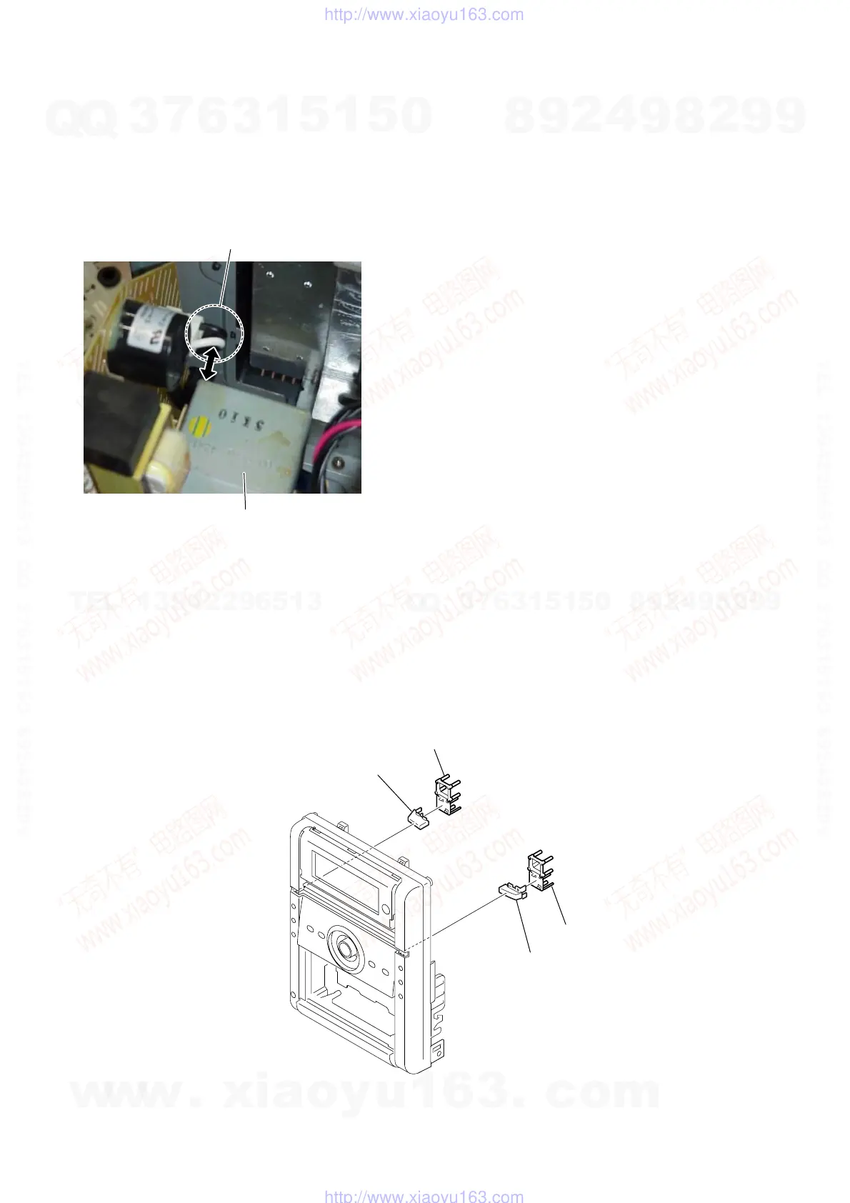 (2) Check that the single-sheathed portion of the power cord does not contact the transformer