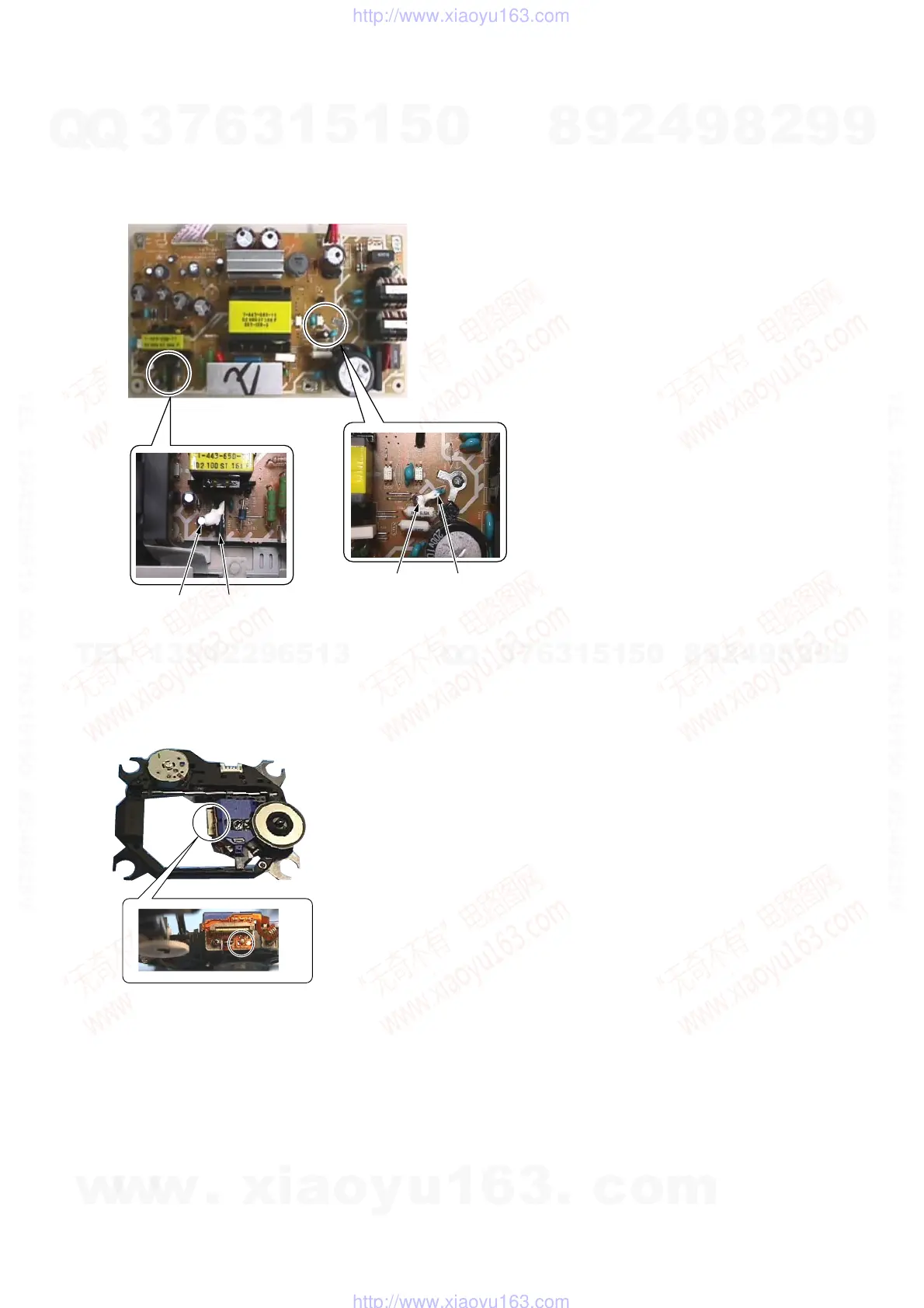 Be sure to fix the capacitors with adhesive agent when part or circuit board is replaced.