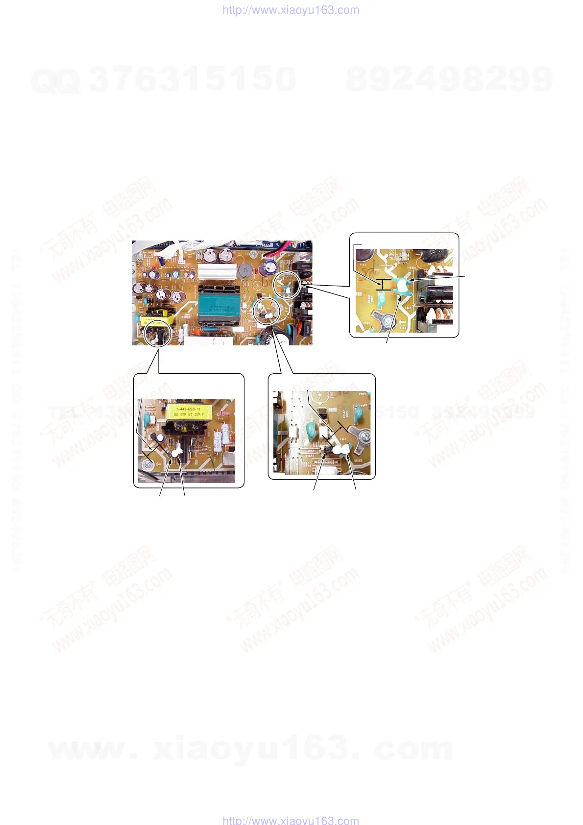 The following parts on the POWER board and on the MAIN board must be fixed by using the adhesive agent (such as Sony Bond Master) as it