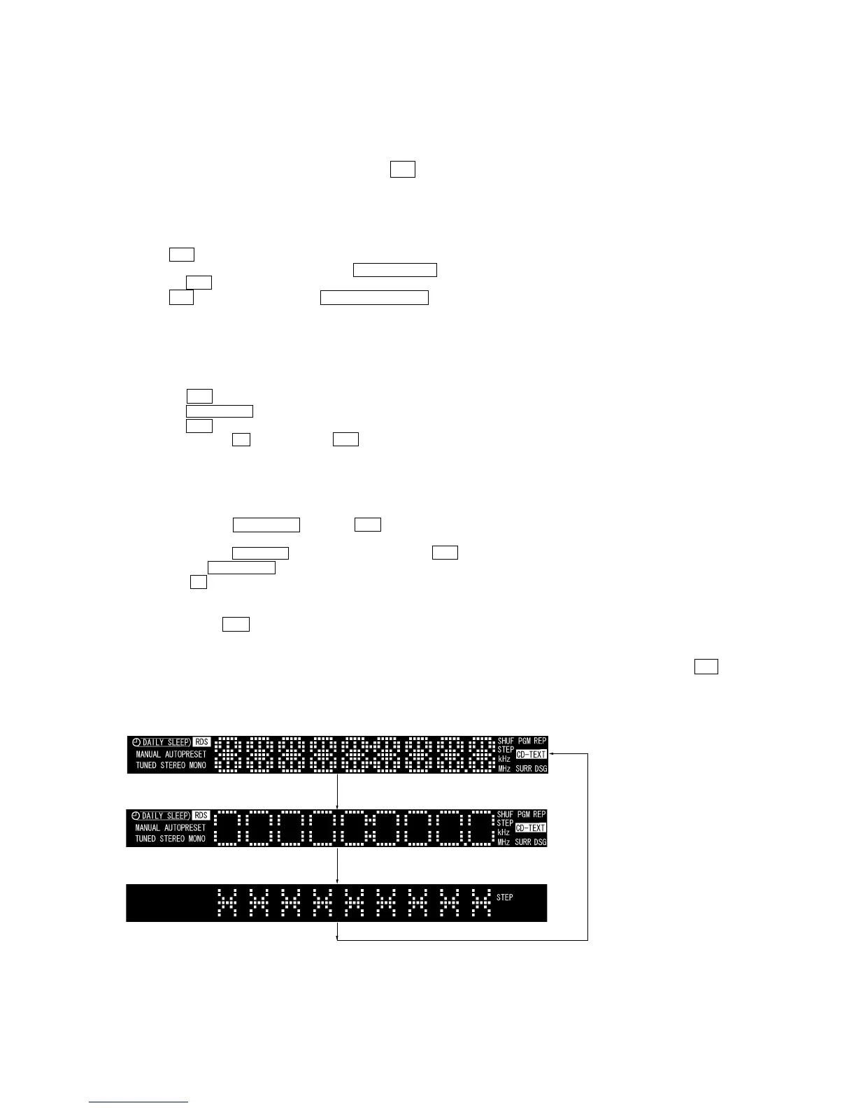 2. When the test mode is set, the characters “STEP” are displayed on the LCD.