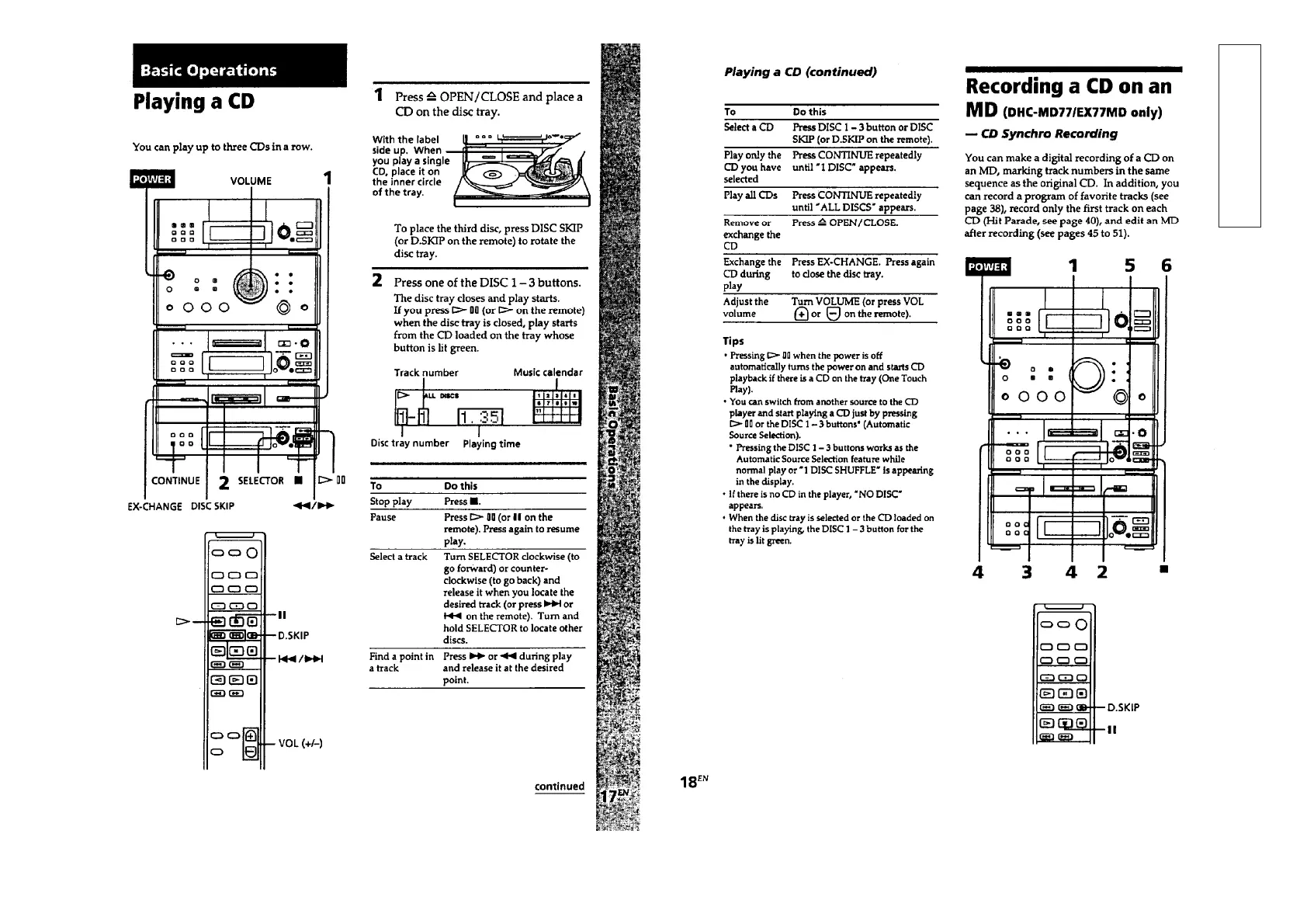 Sony HCD-EX770 - SECTION 2 GENERAL; Basic Operations; Playing a CD