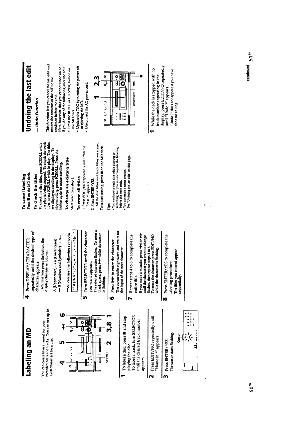Sony HCD-EX770 - Undoing the last edit; - Undo Function; To cancel labelling; To check the titles