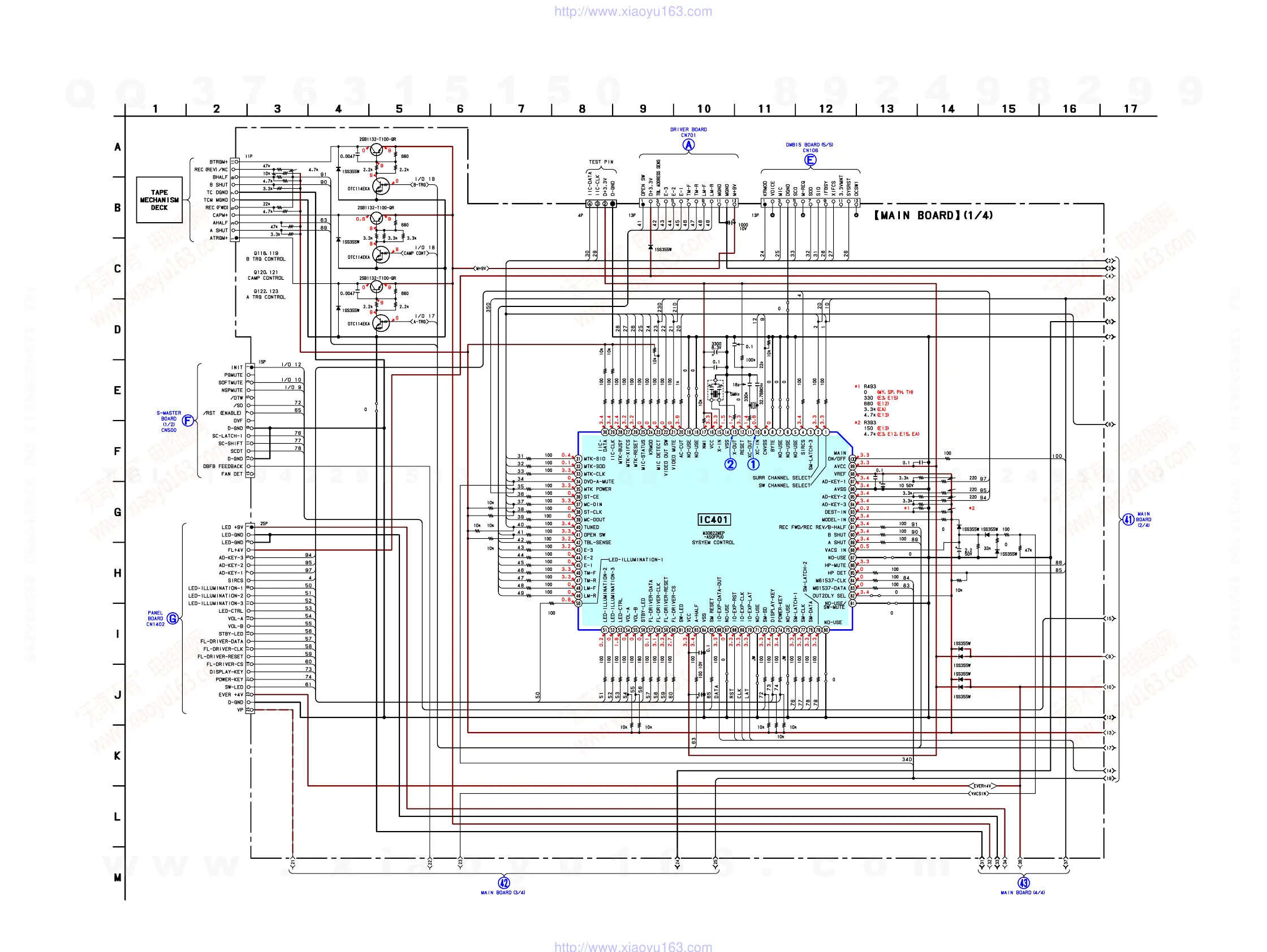 6-16. SCHEMATIC DIAGRAM — MAIN SECTION (1/4) — • Refer to page 71 for IC Pin Description of IC401.