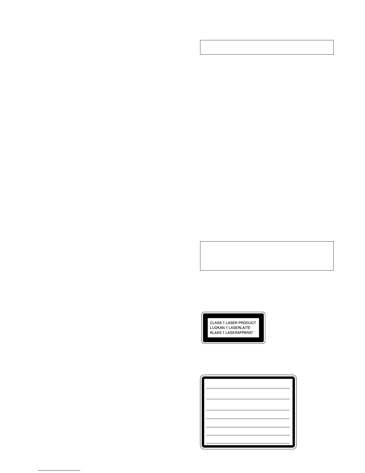 This appliance is classified as a CLASS 1 LASER product.