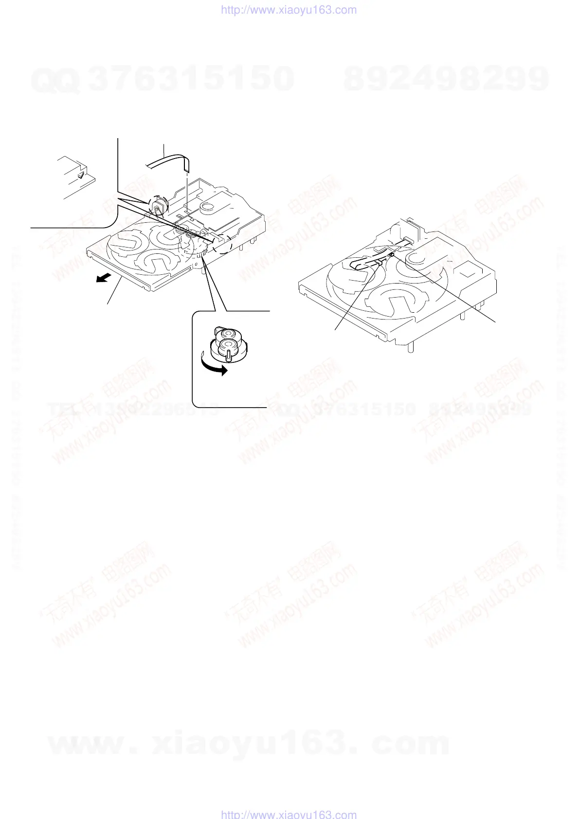 (Perform after removing the front panel.) Note:When installing the Disc tray, pull around the flat type wire to