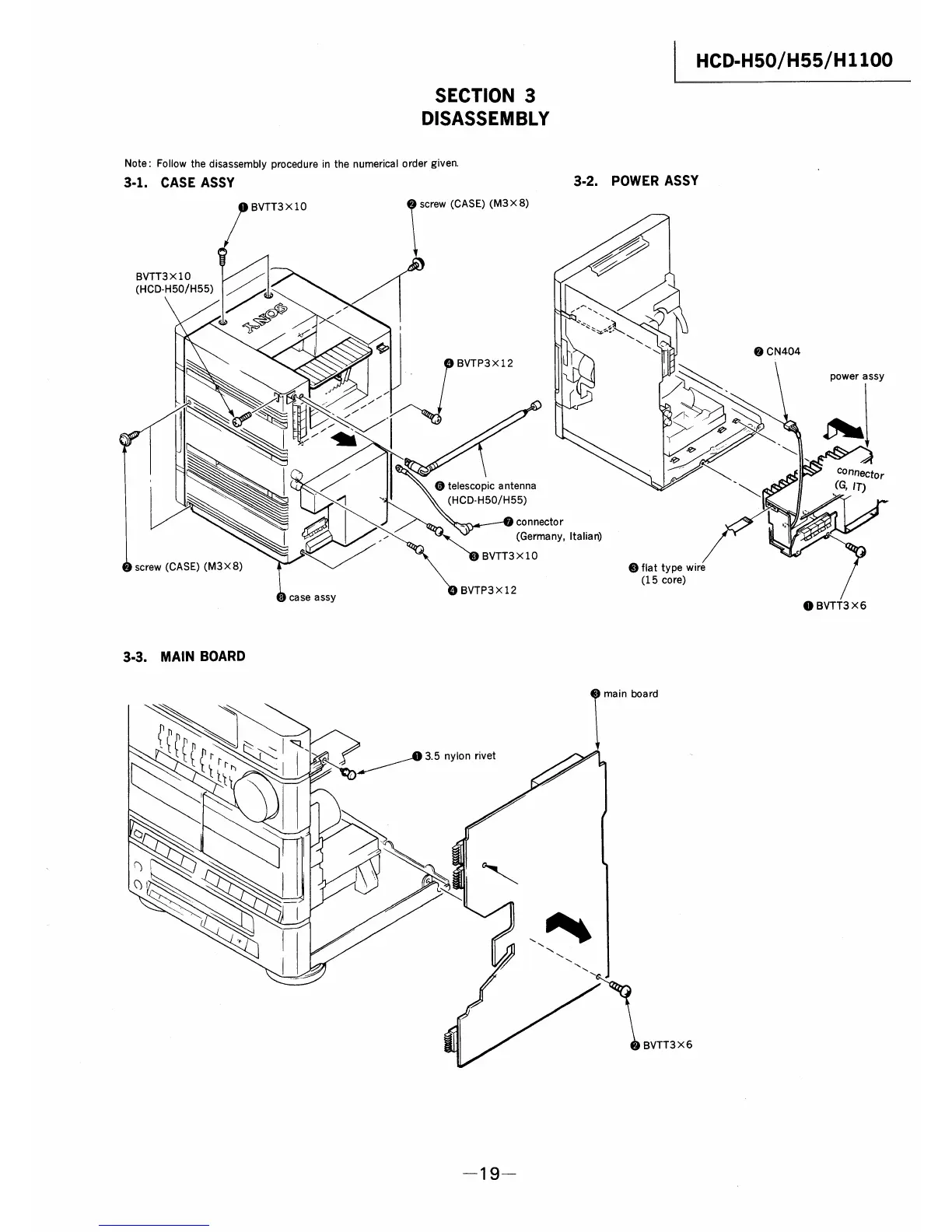 Sony HCD-H50 - Disassembly Procedures; Case Assembly Disassembly; Power Assembly Disassembly; Main Board Disassembly