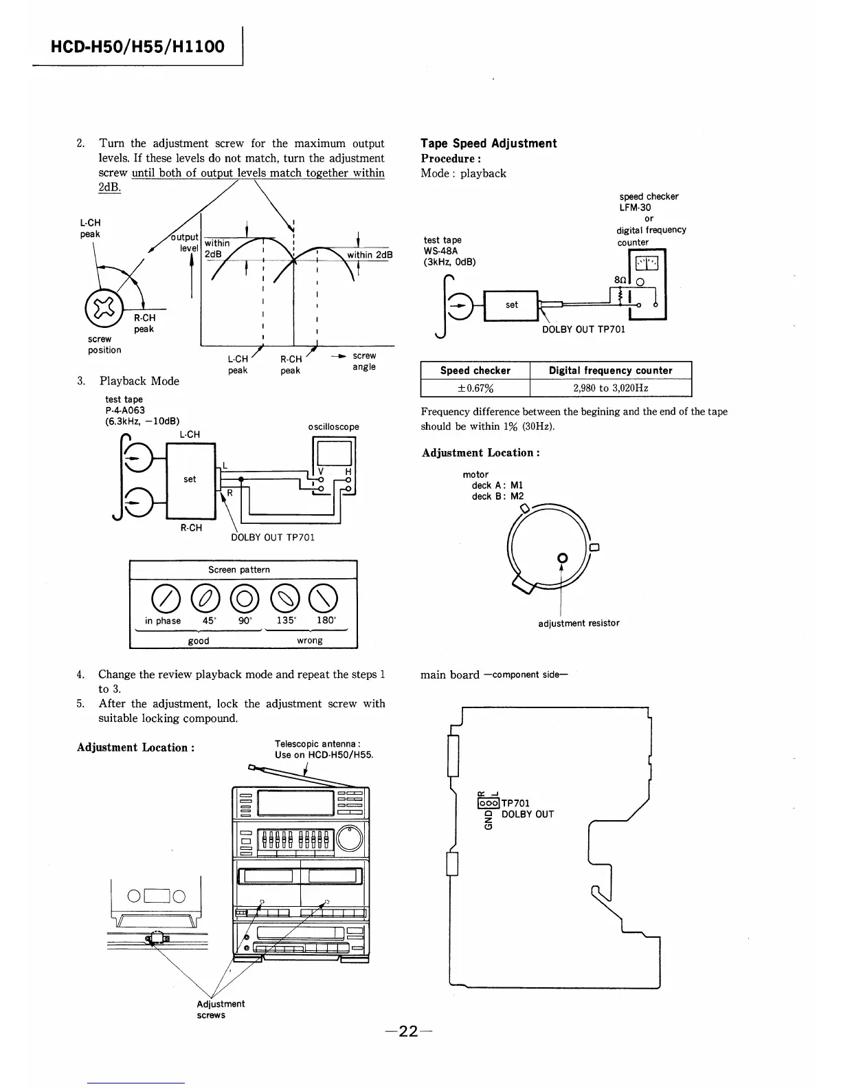 Sony HCD-H50 - Electrical Adjustment Details; Tape Speed Adjustment