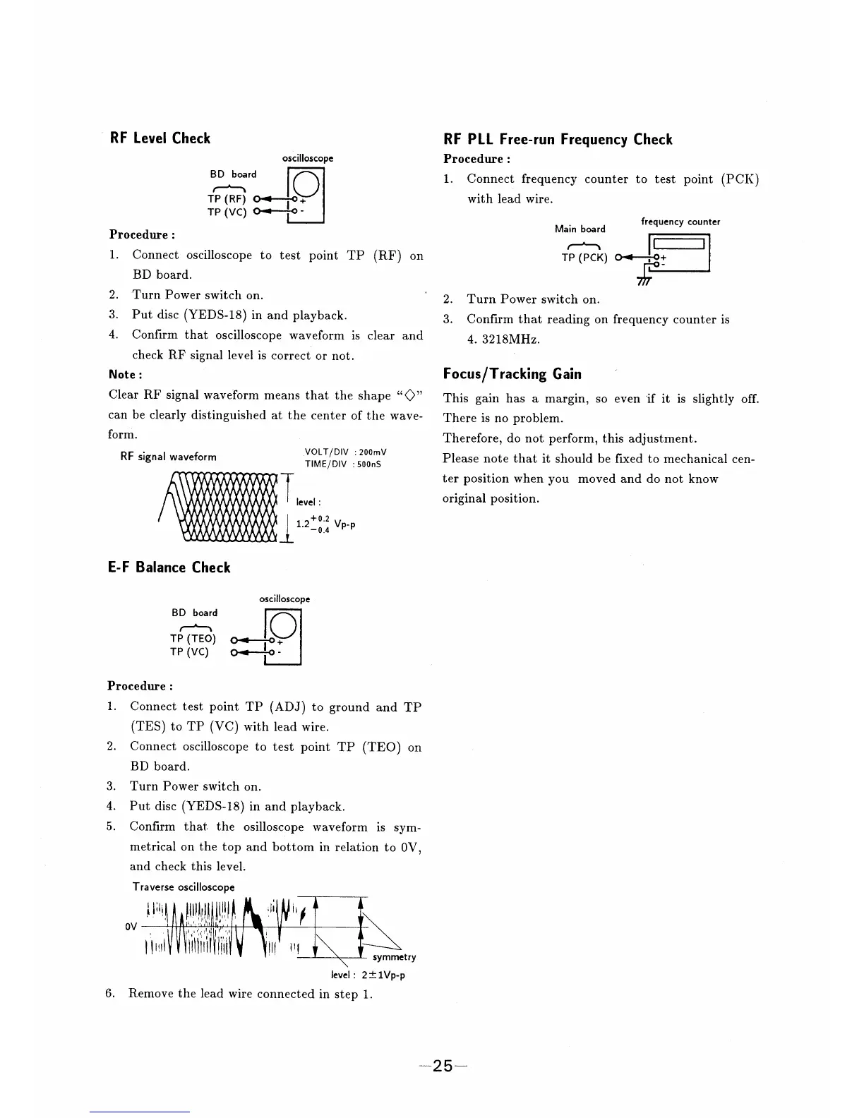 Sony HCD-H50 - CD Section Performance Checks; RF Level Check; RF PLL Free-run Frequency Check; E-F Balance Check