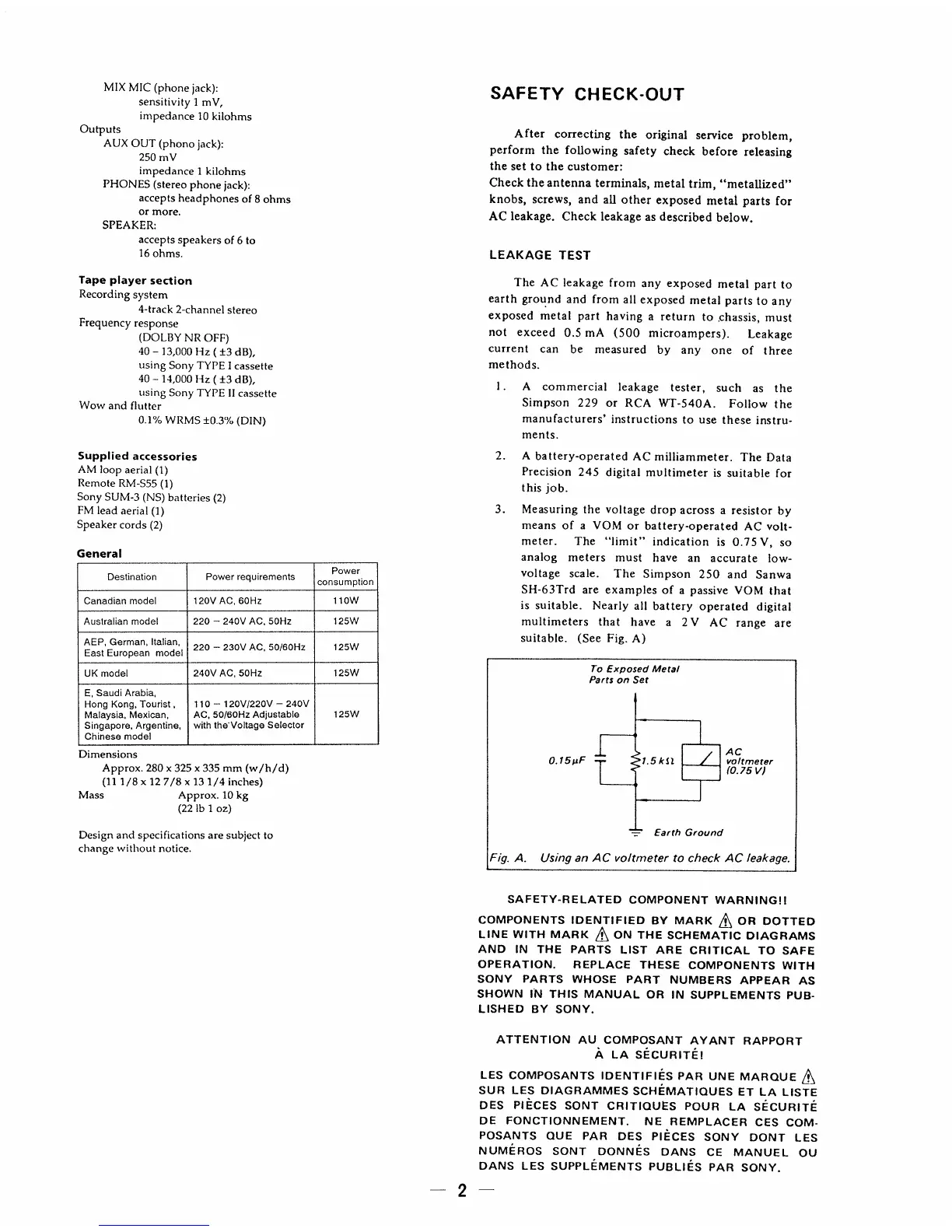 Sony HCD-H505 - SAFETY CHECK-OUT; LEAKAGE TEST