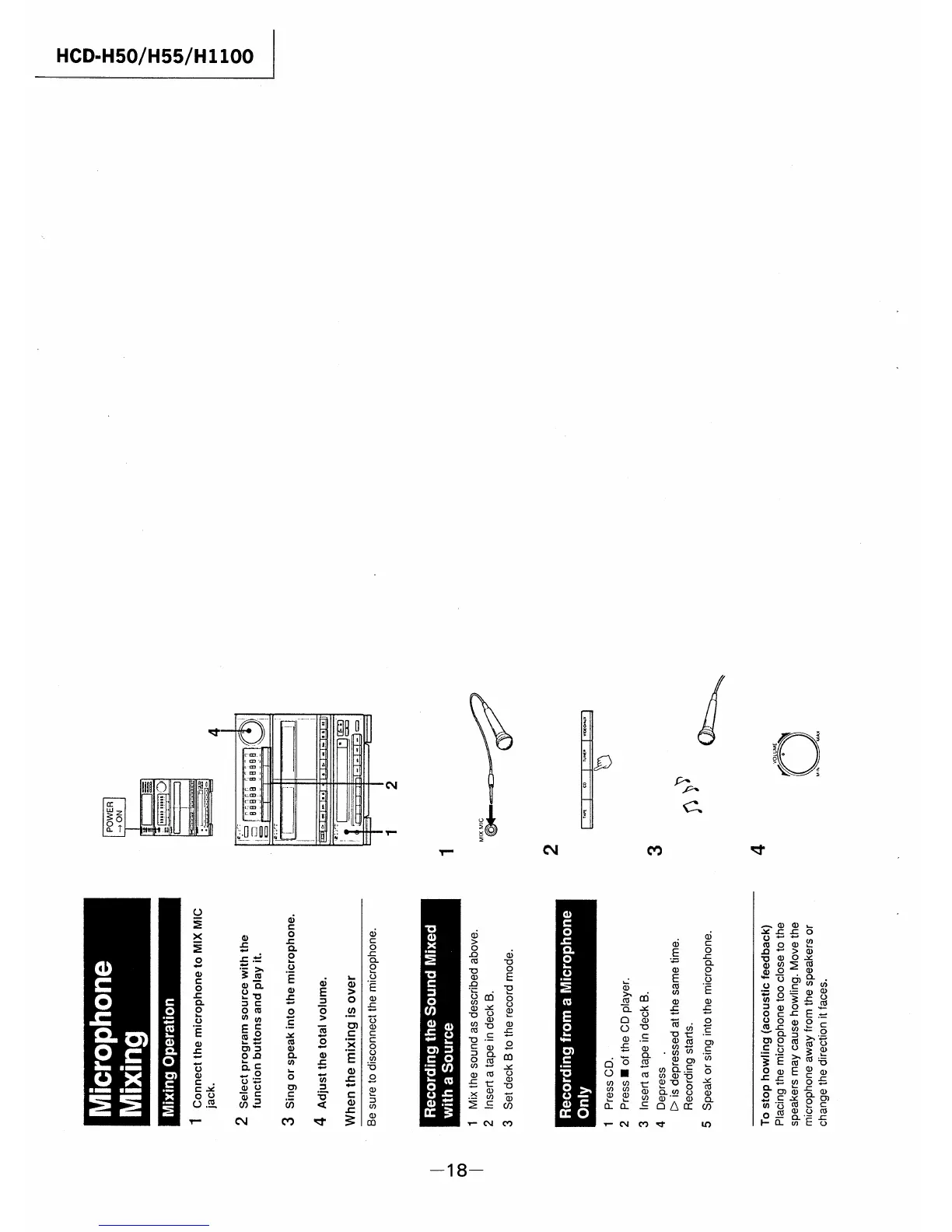 Sony HCD-H55 - Microphone Operations; Microphone Mixing and Recording; Preventing Acoustic Feedback