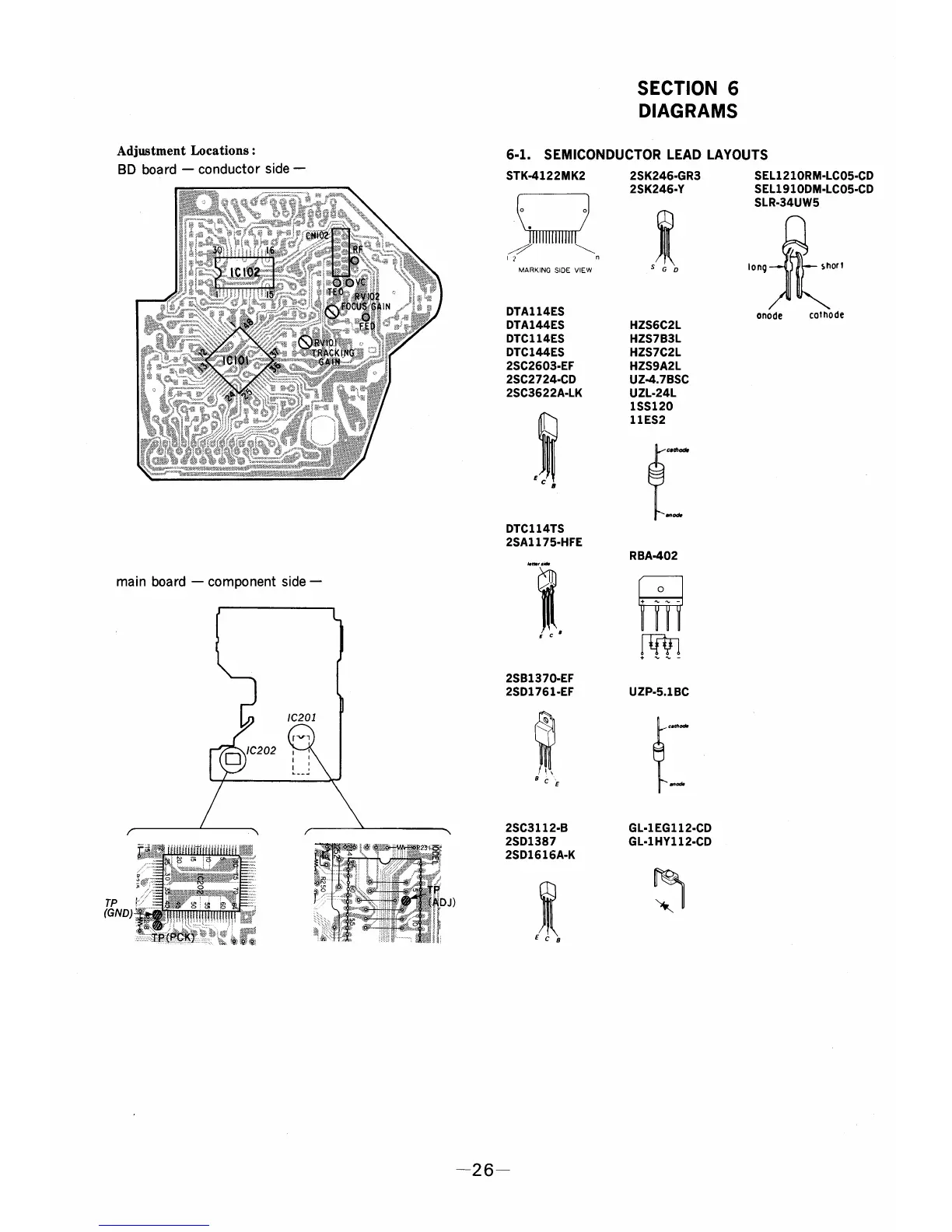 Sony HCD-H55 - Diagrams Overview; Semiconductor Lead Layouts; Adjustment Locations Reference