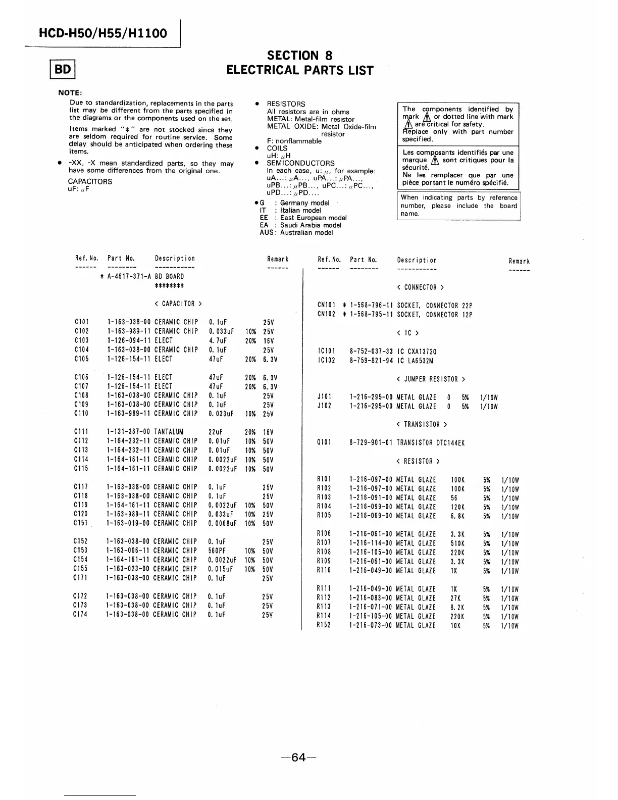 Sony HCD-H55 - Electrical Parts List Overview; Component Lists (Capacitors, Resistors, etc.)