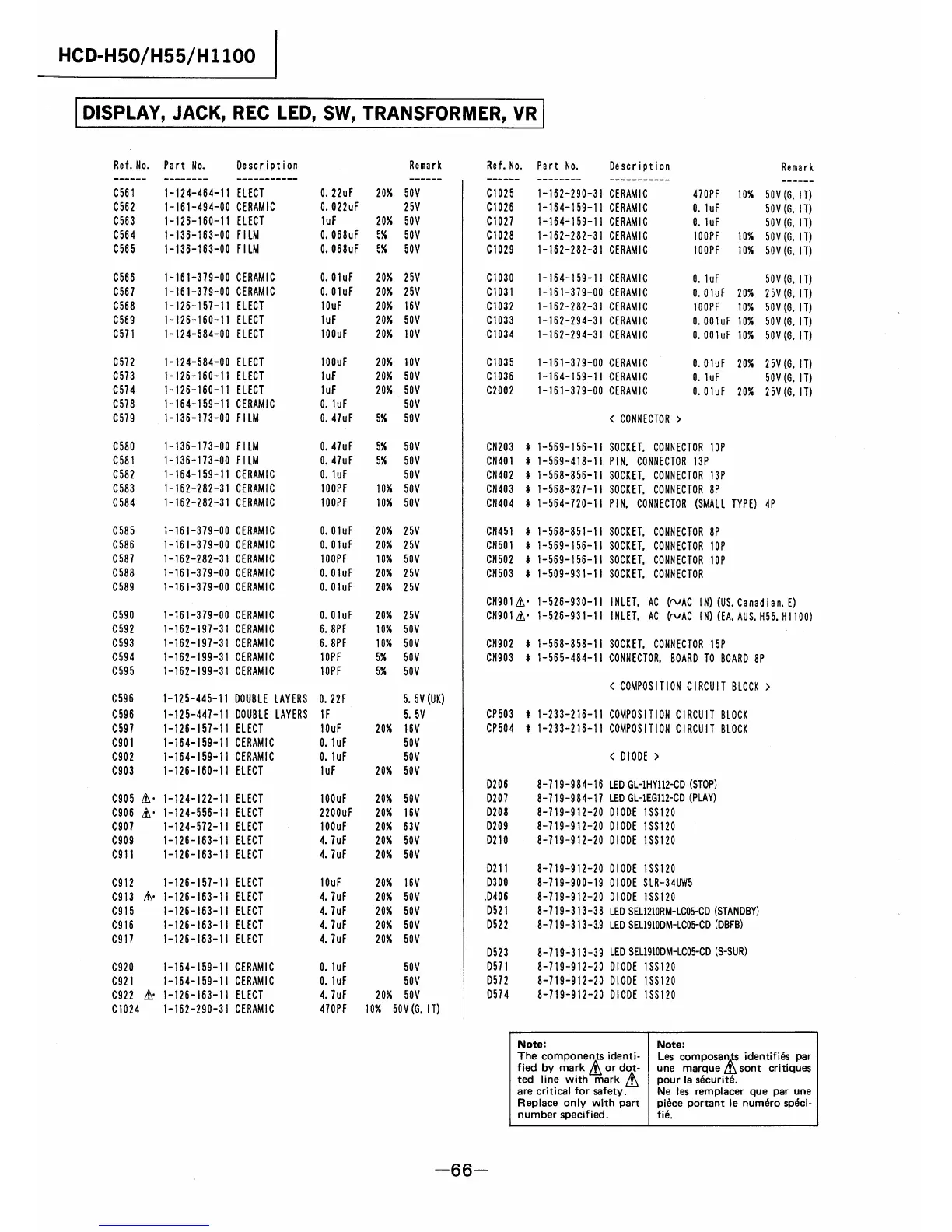 Sony HCD-H55 - Electrical Parts List - Display;Jack;etc. (cont.)