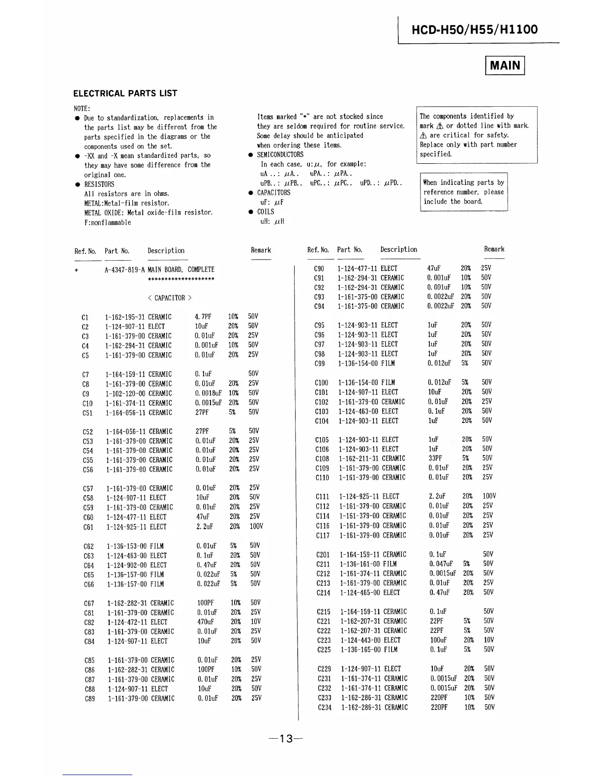 Sony HCD-H55 - MAIN Electrical Parts List; Component Lists (Capacitors, Filters)