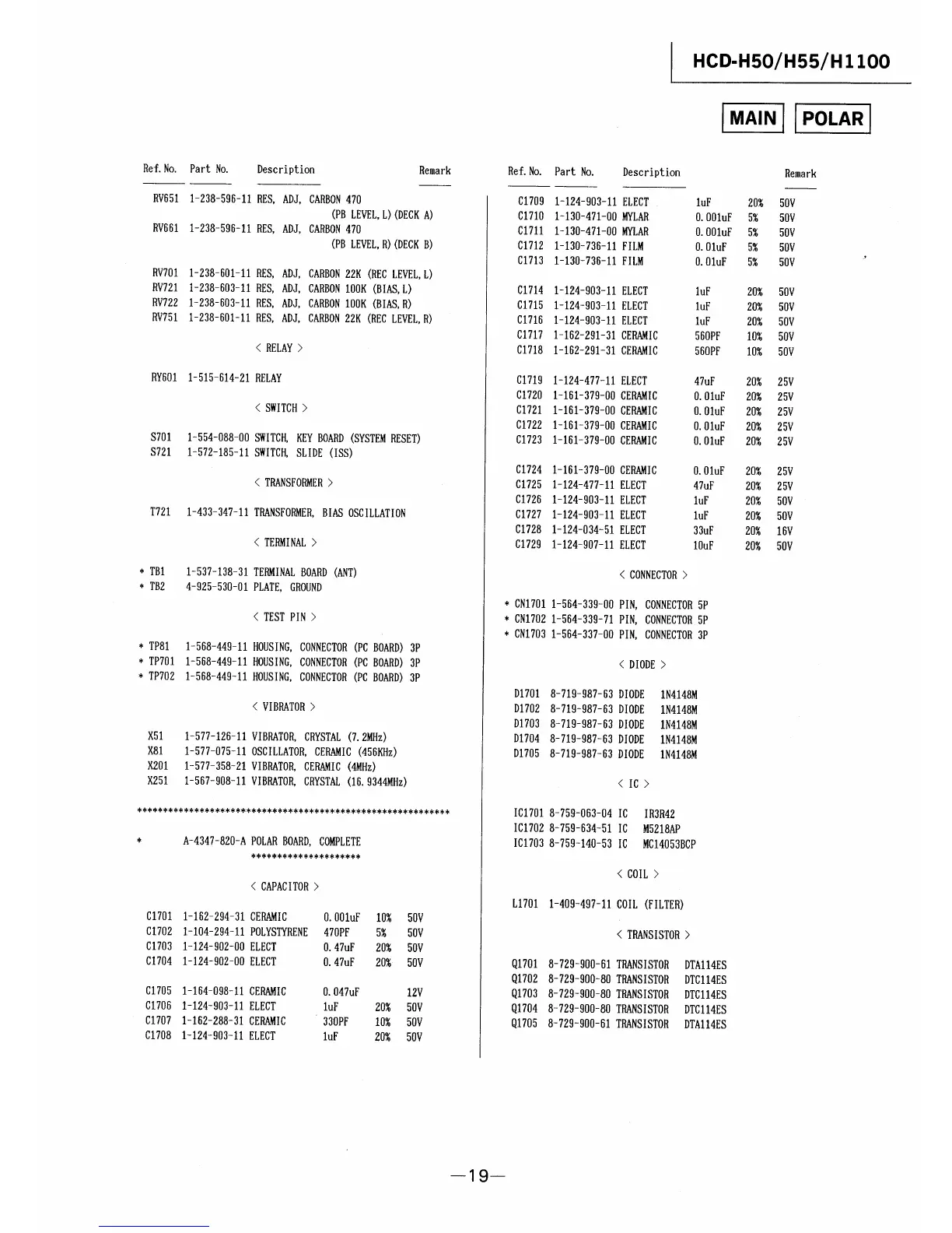 Sony HCD-H55 - MAIN Electrical Parts List (cont.); Variable Resistors List