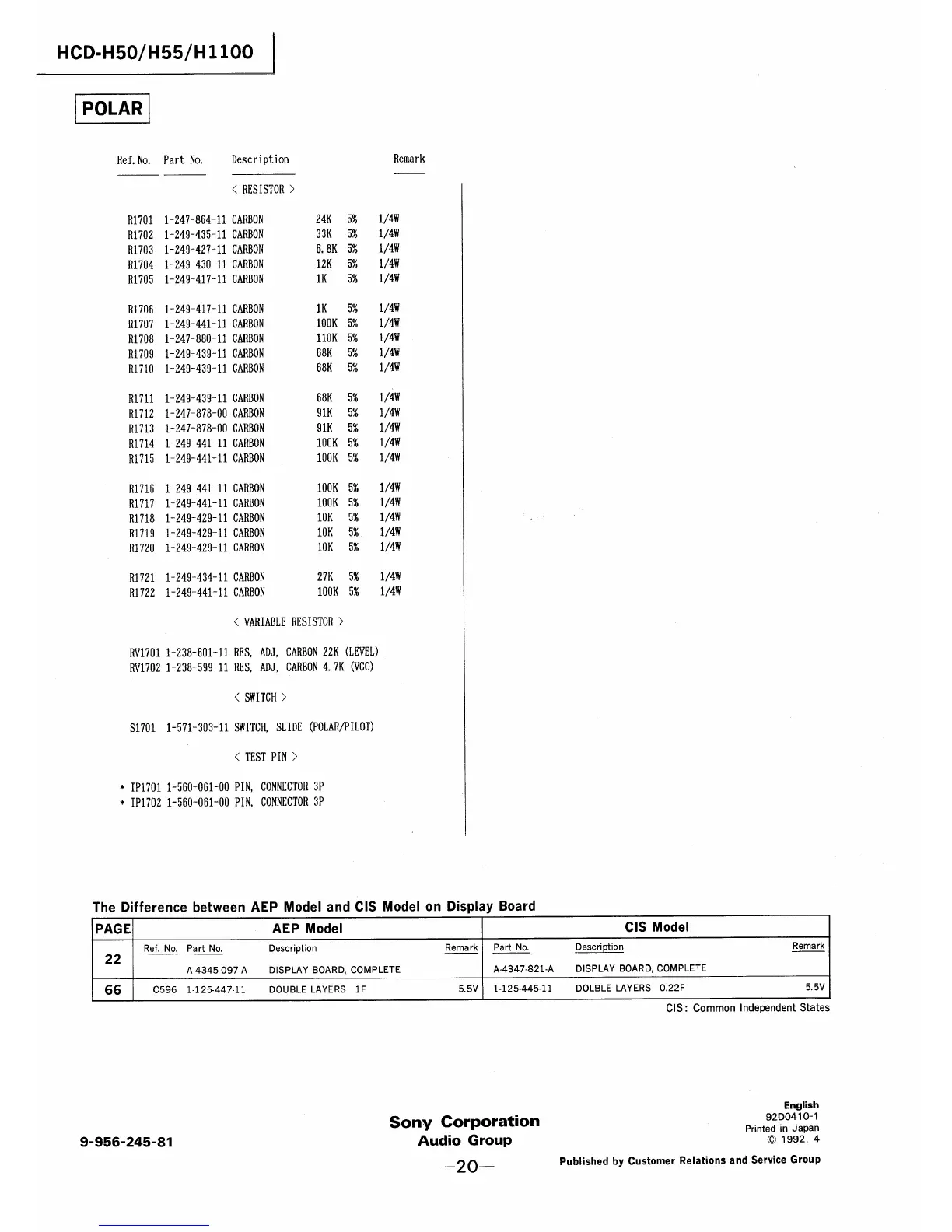 Sony HCD-H55 - MAIN Electrical Parts List (cont.); Switches List (cont.)
