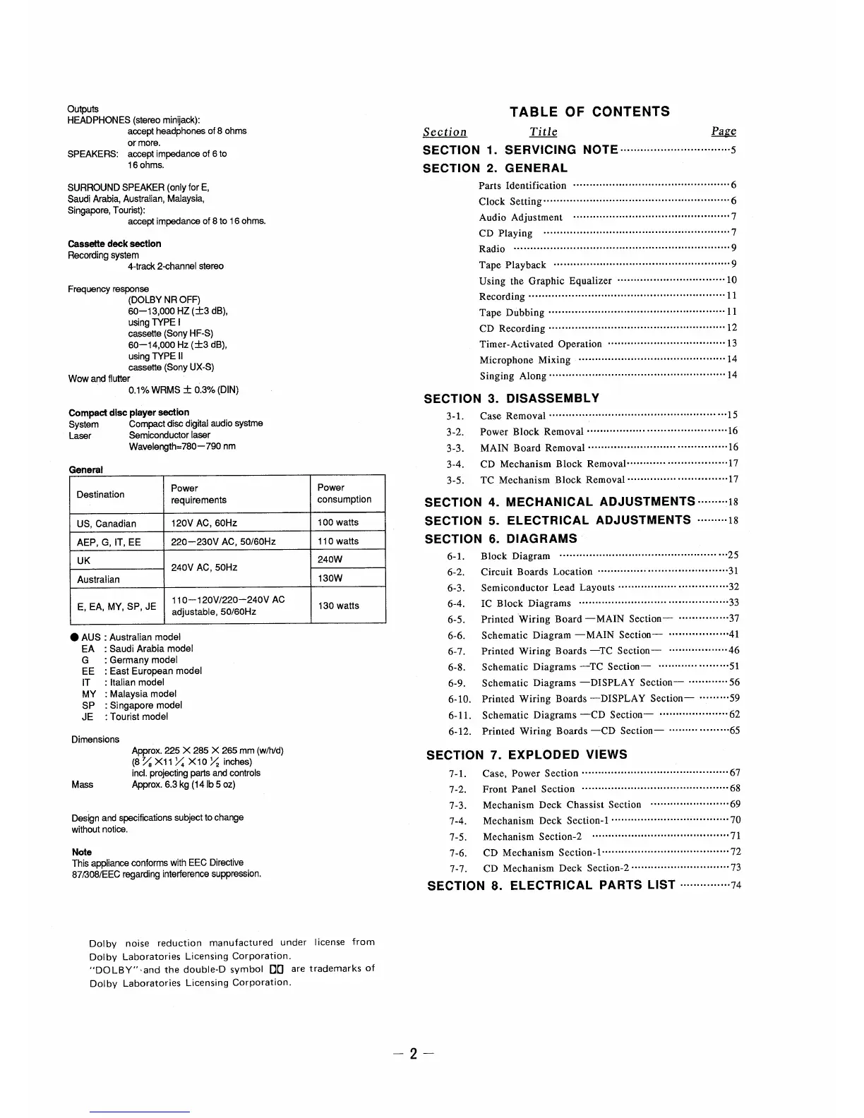 Sony HCD-H61 - GENERAL INFORMATION; POWER REQUIREMENTS AND CONSUMPTION