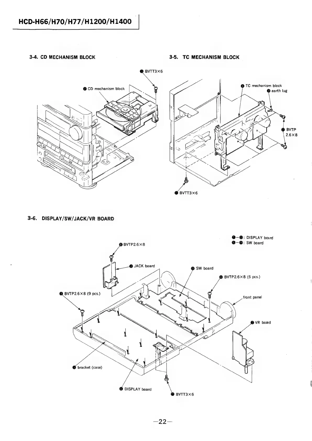 Sony HCD-H66 - 3-4. CD Mechanism Block; TC Mechanism Block; Display;Sw;Jack;Vr Board