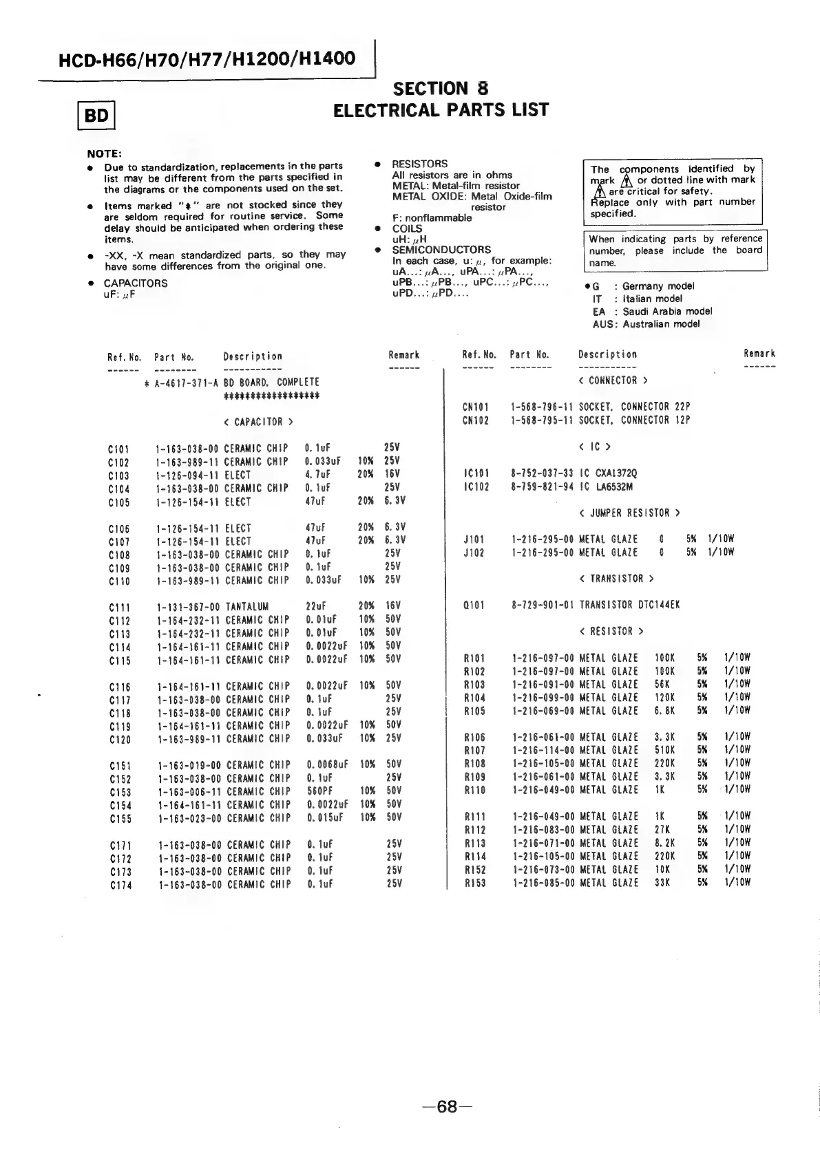 Sony HCD-H66 - Section 8 Electrical Parts List