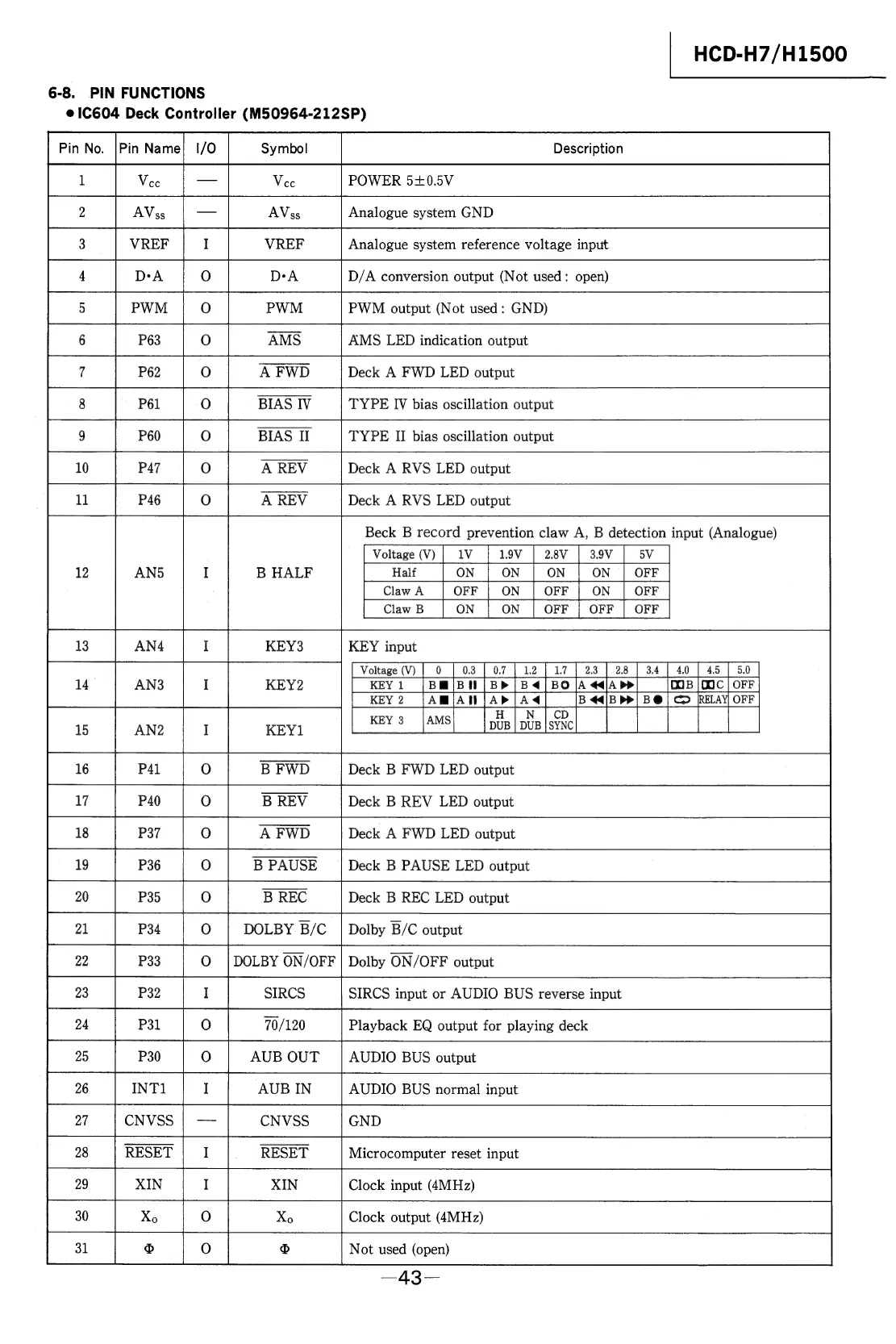 Sony HCD-H7 - CIRCUIT DIAGRAMS AND PIN FUNCTIONS
